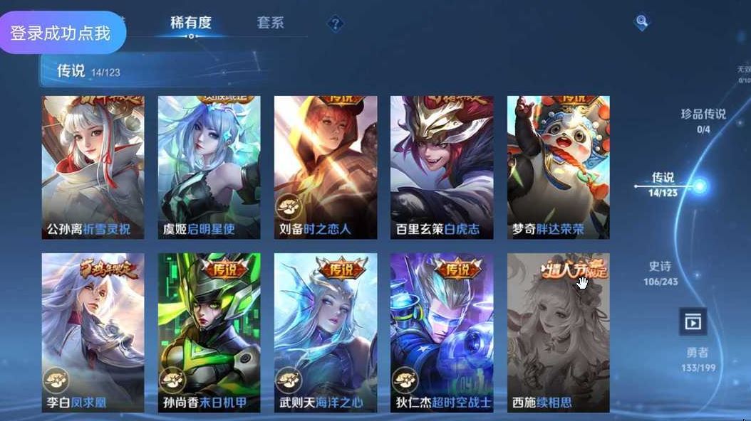 装备描述:贵族等级V10,英雄数量128,典藏皮肤数2,皮肤数量365,冰锋战神街头霸王至尊宝凤求凰逐梦之影大圣娶亲冰霜恋舞曲白虎志飞衡梁祝匿光追影者鸣剑·曳影孙行者神威傲雪梅枪淬星耀世