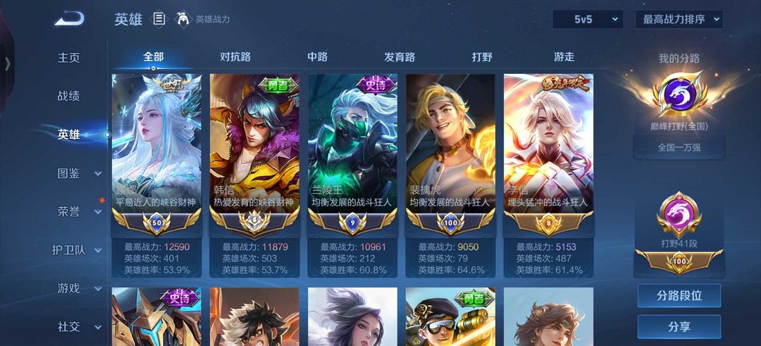 四月在榜省标露娜❤️+高胜率+历史国服韩信小国标兰陵王裴擒虎❤️可排