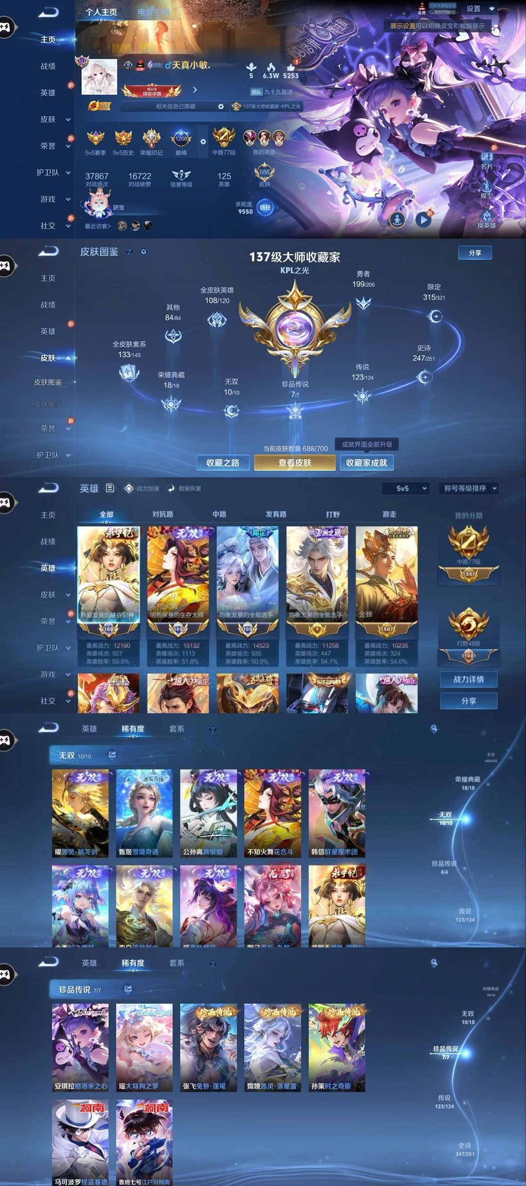 满新皮全有⭐77段中路48段游走51段打野三国服⭐满典藏无双珍品限定传说⭐怪盗基德柯南⭐器灵·螭龙剑