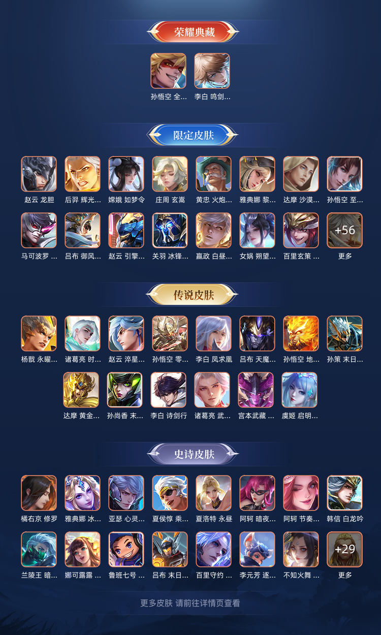 装备描述:贵族等级V10,英雄数量127,典藏皮肤数2,皮肤数量389,冰锋战神街头霸王天魔缭乱至尊宝王者之锤凤求凰逐梦之影武陵仙君黄金狮子座全息碎影大圣娶亲白虎志朱雀志久胜战神飞衡梁祝鸣剑·曳影龙胆孙行者玉兔公主傲雪梅枪淬星耀世时雨天司