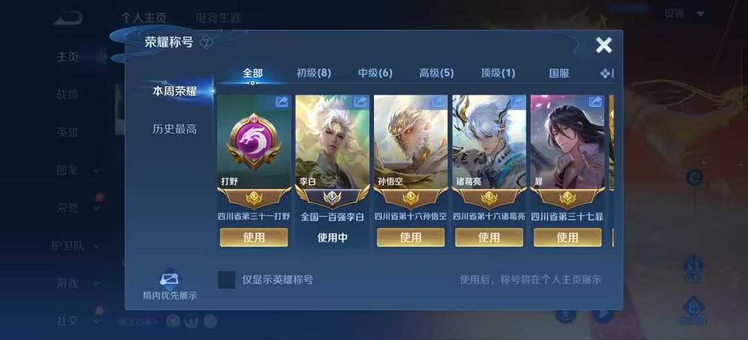 本周小国标李白❤️5国服在榜5个省标诸葛亮猴子李白曜暃❤️无双珍品皮肤❤️不要挂机谢谢!禁巅峰谢谢!