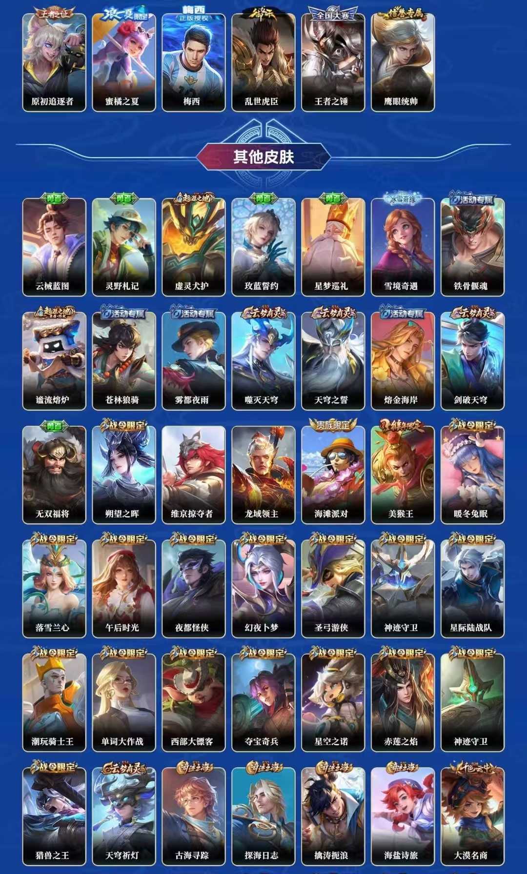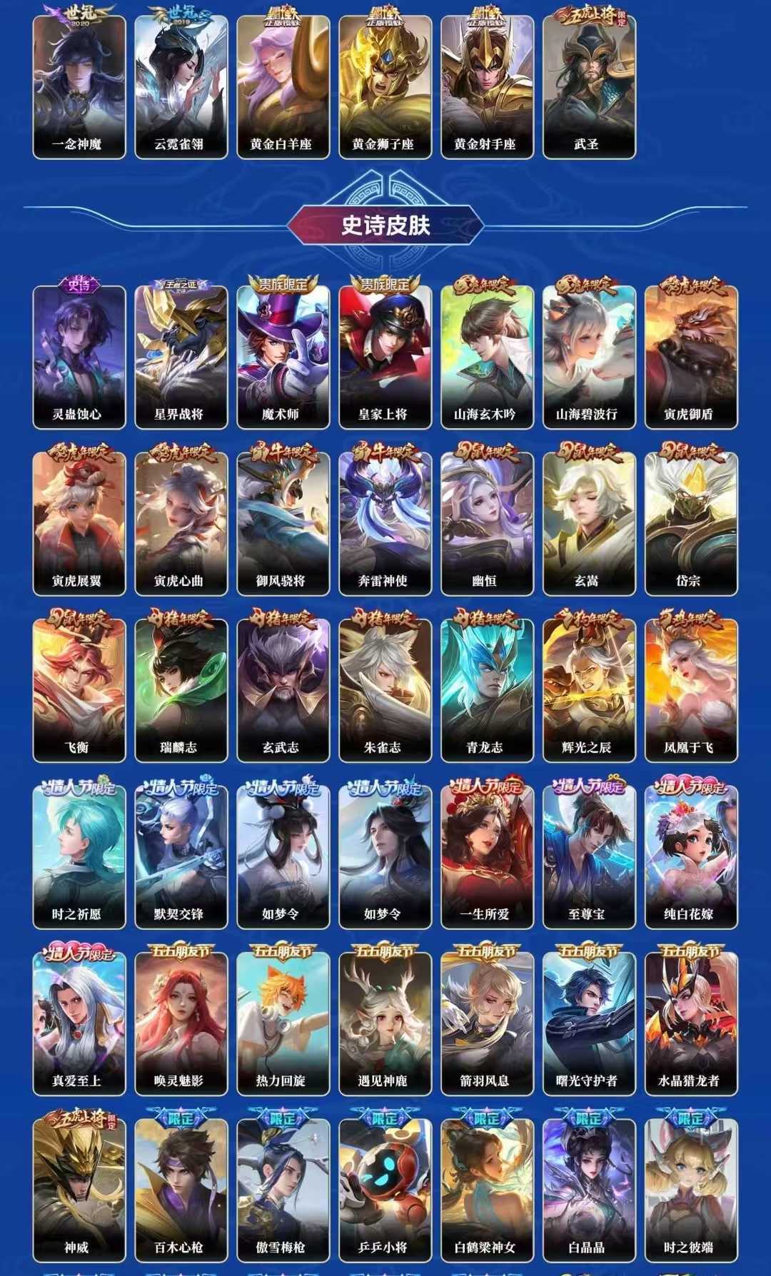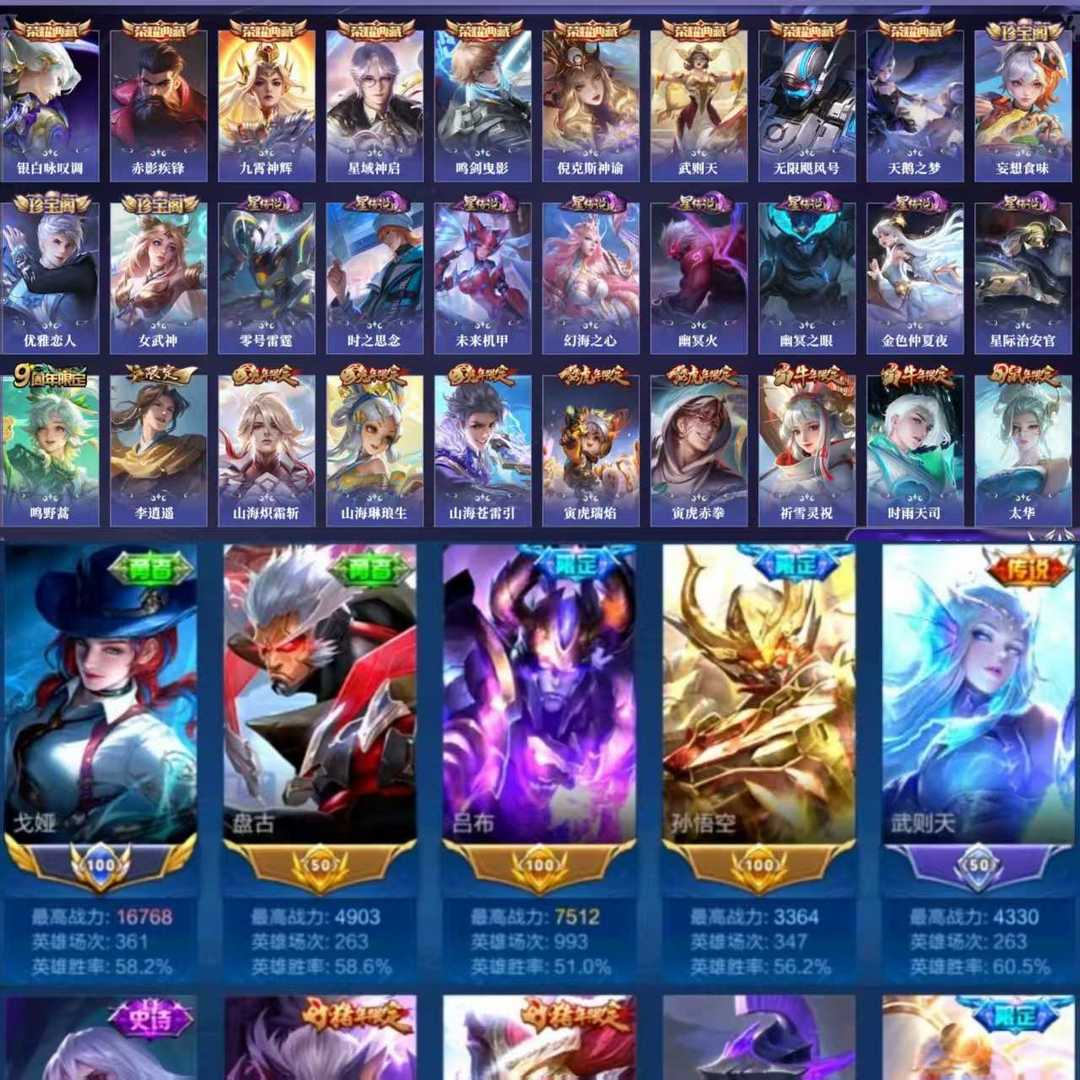 限制: 租号5次及以上 |装备描述:【C82】贵族V10~470皮9典藏62传说国服戈娅3金标银白咏叹调,赤影疾锋,无限飓风号,九霄神辉,星域神启,鸣剑·曳影,天鹅之梦,倪克斯神谕【优质限定皮肤】:山海·苍雷引,山海·琳琅生,山海·炽霜斩,无双飞将,云中君时之祈愿,瑶时之祈愿,祈雪灵祝,武圣,神威,至尊宝,白虎志,梅西,天魔缭乱,凤求凰