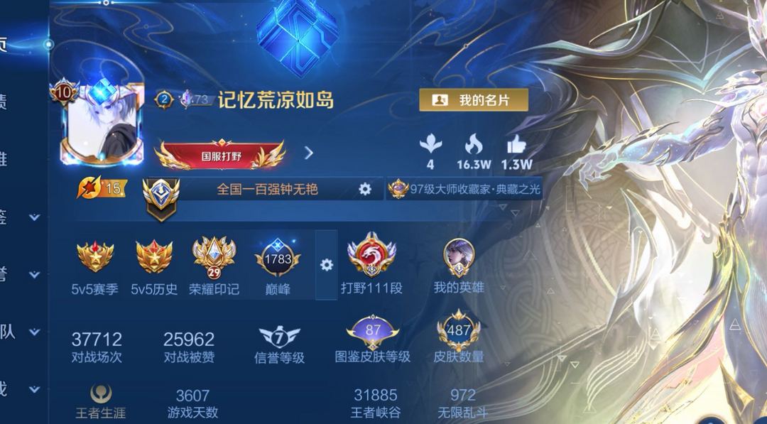 11月在榜国服打野111段 小国标钟无艳 高评分 9省标在榜 可排位禁巅峰