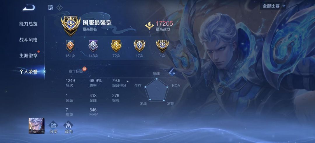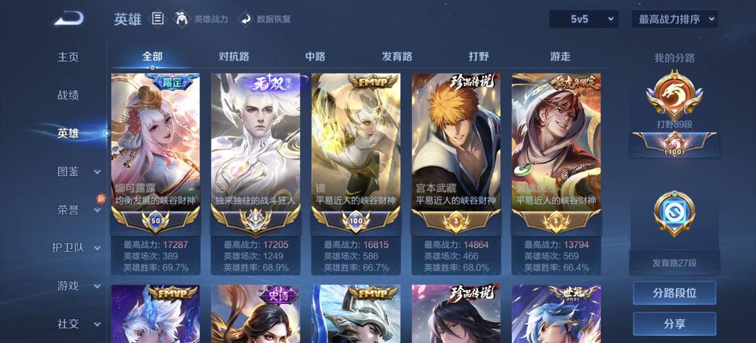 正式服在榜90段打野⭐历史1.7w大国标铠⭐1.7w小国标镜露露⭐无双FMVP限定⭐超多限定皮肤⭐