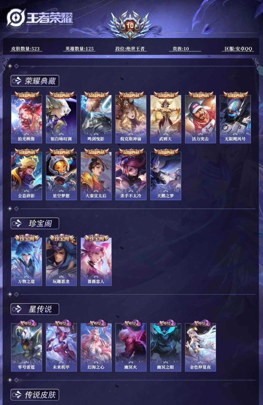 【C146】贵族V10~510皮肤12水晶54传说,全新皮,时光映像幻光神枪天降福星情瑶九霄神辉,银