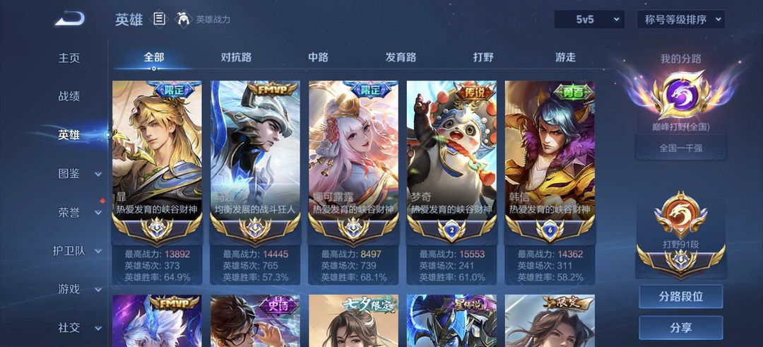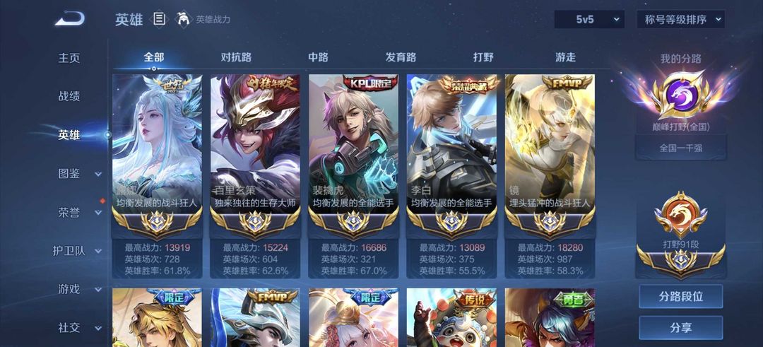 四月在榜三省标镜马超霏⭐91段国服打野⭐️历史国服镜马超露娜玄策老虎⭐有魔方