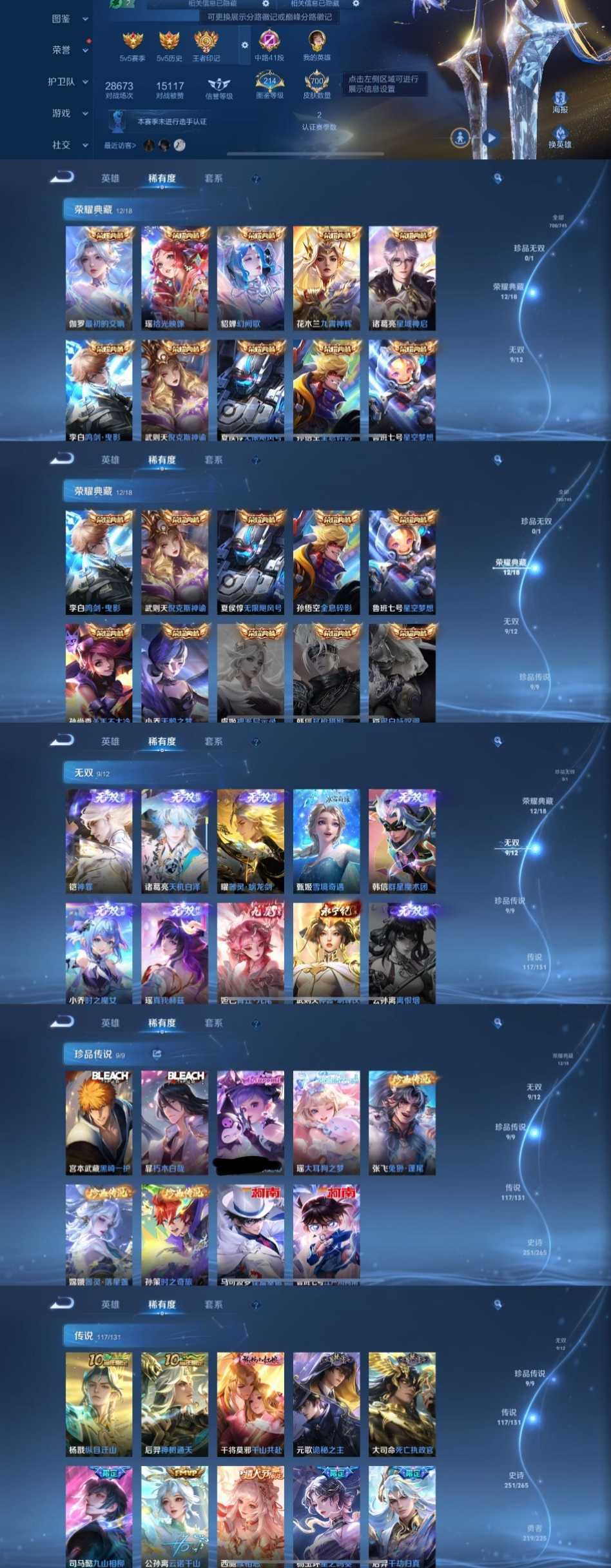 限制: 租号5次及以上 | 撤单率<49%才可租用此帐号装备描述:时间到了还登录白玩或者顶号全部改密拉黑处理永不解除,顶号机器会秒禁玩改密,顶号不仅拉黑还没得玩,赚三两块不容易,请理解谢谢。 ❤❤❤❤❤❤❤❤❤❤❤❤❤❤❤ 请勿开挂,挂机,送头,骂人,撤单后游戏等如有违规永久拉黑永不解除。 重置二级密码不要费劲了,号主每天都会上号查看,多行不义必自毙,人在做天在看,多做好事多自律,少做缺德事。 该号英雄128个皮肤700个,典藏13个,无双9个,珍品传说9个,星传说8个,传说119个,史诗251个,祝你游戏愉快~