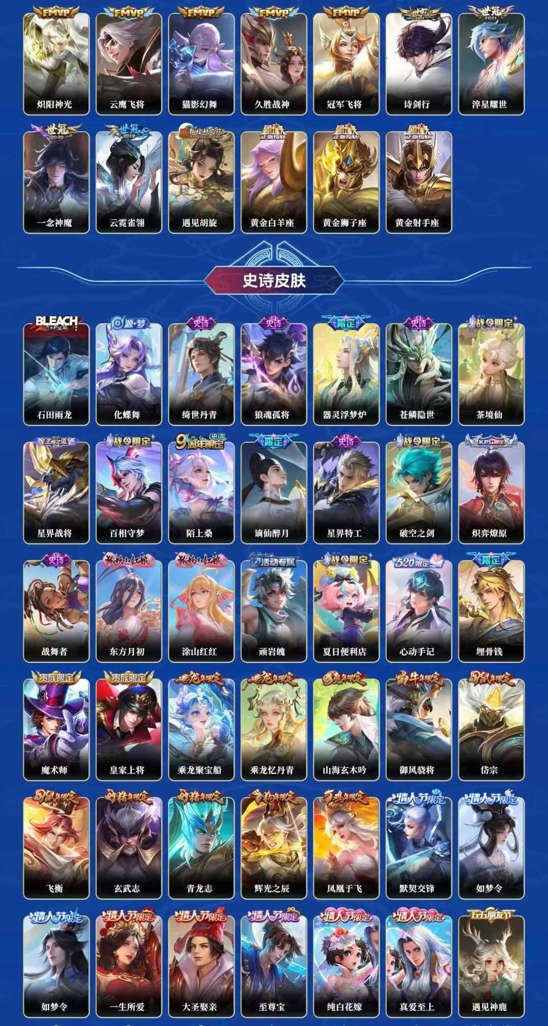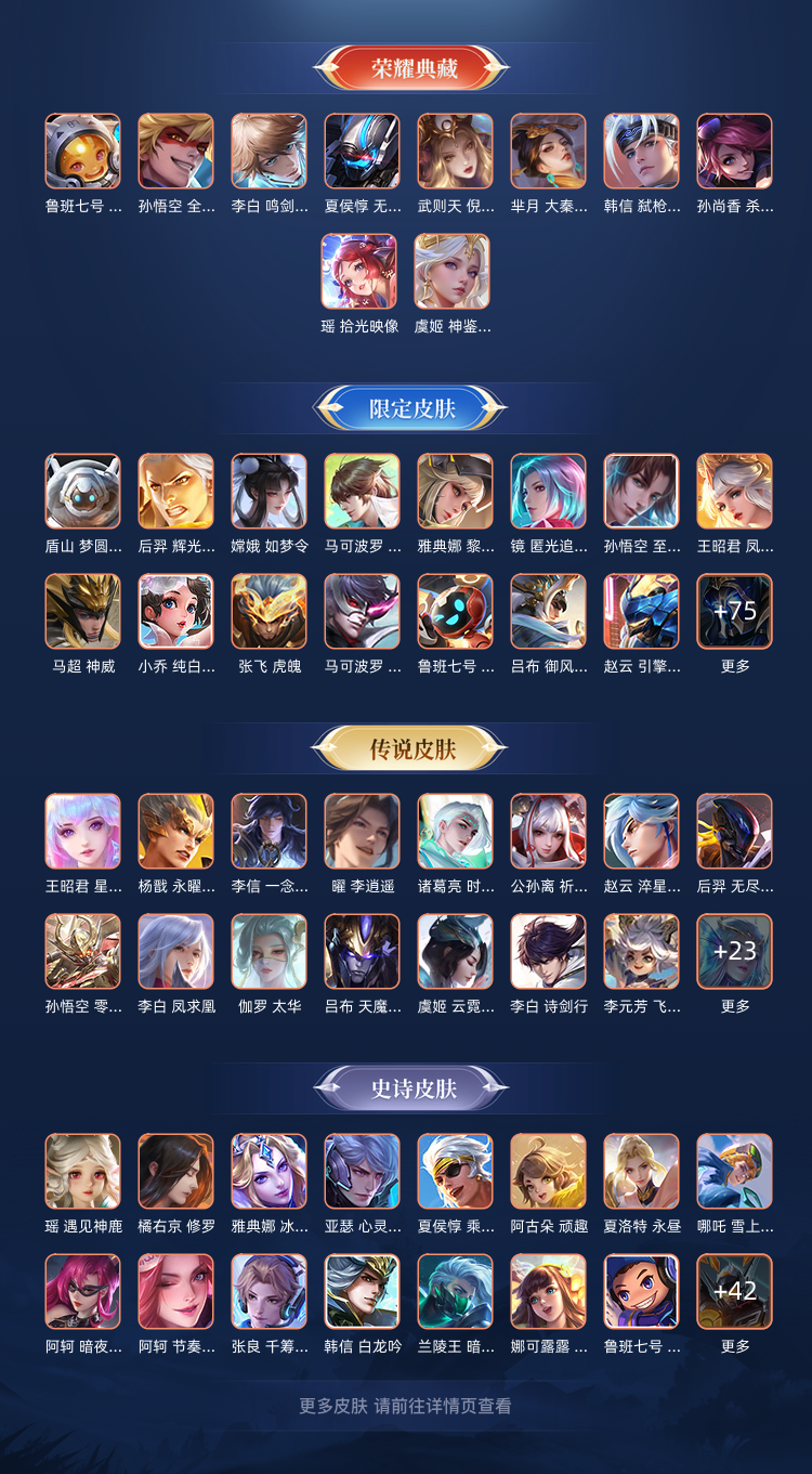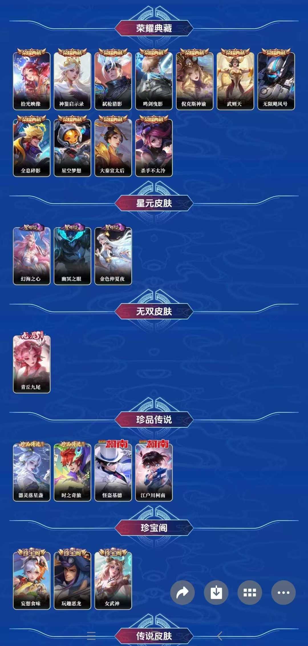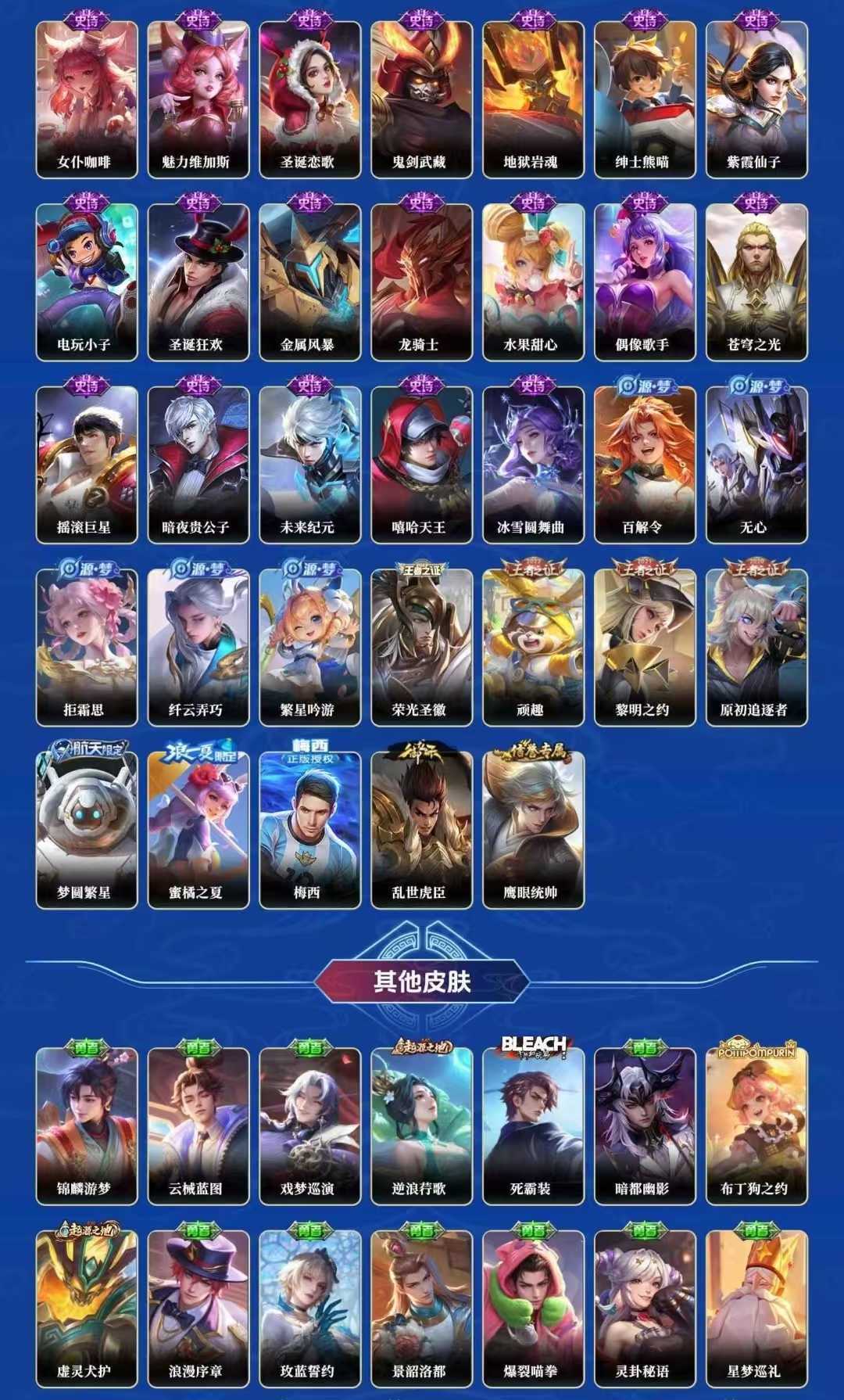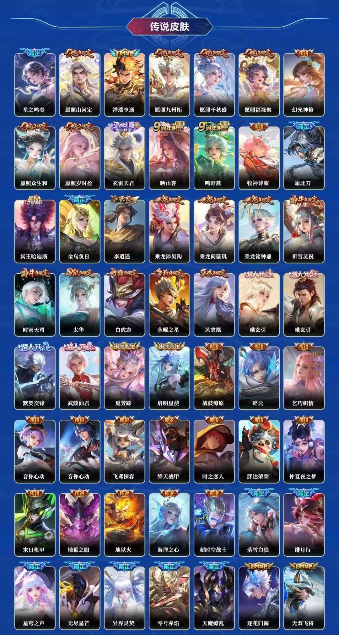 【C298】贵族V10~545皮肤11水晶1无双4珍品69传说基德青丘九尾