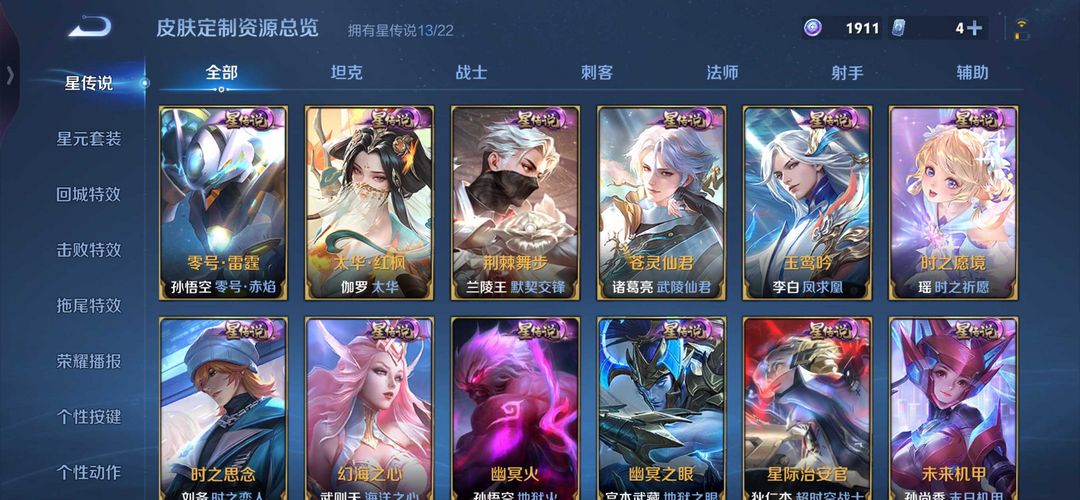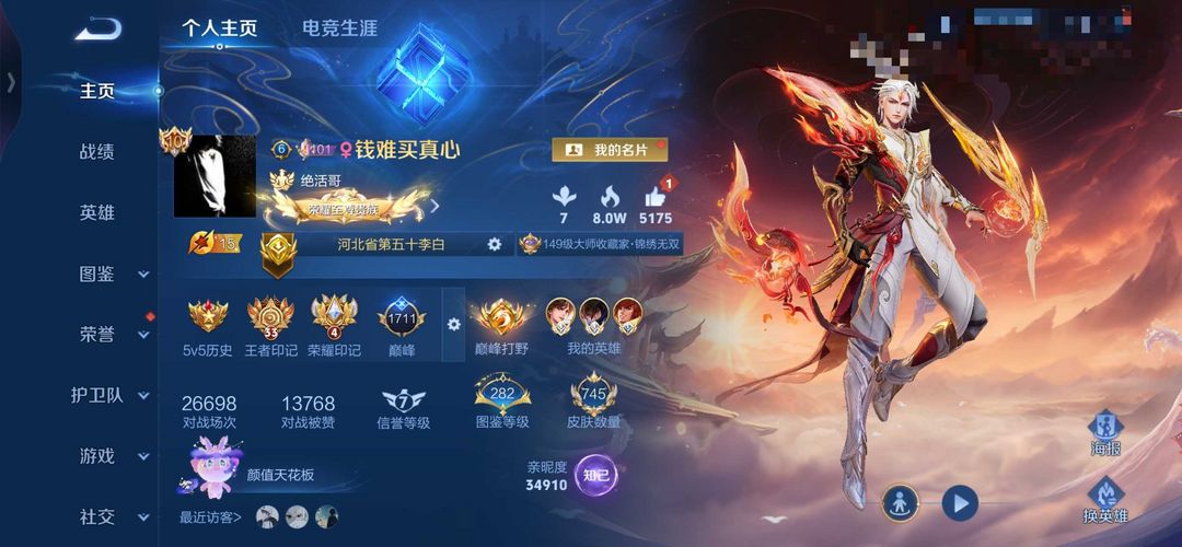 荣耀v10 745皮肤全满皮在榜省李白 老虎 澜 6小兵 26天幕多按键 满级野王号可以排位