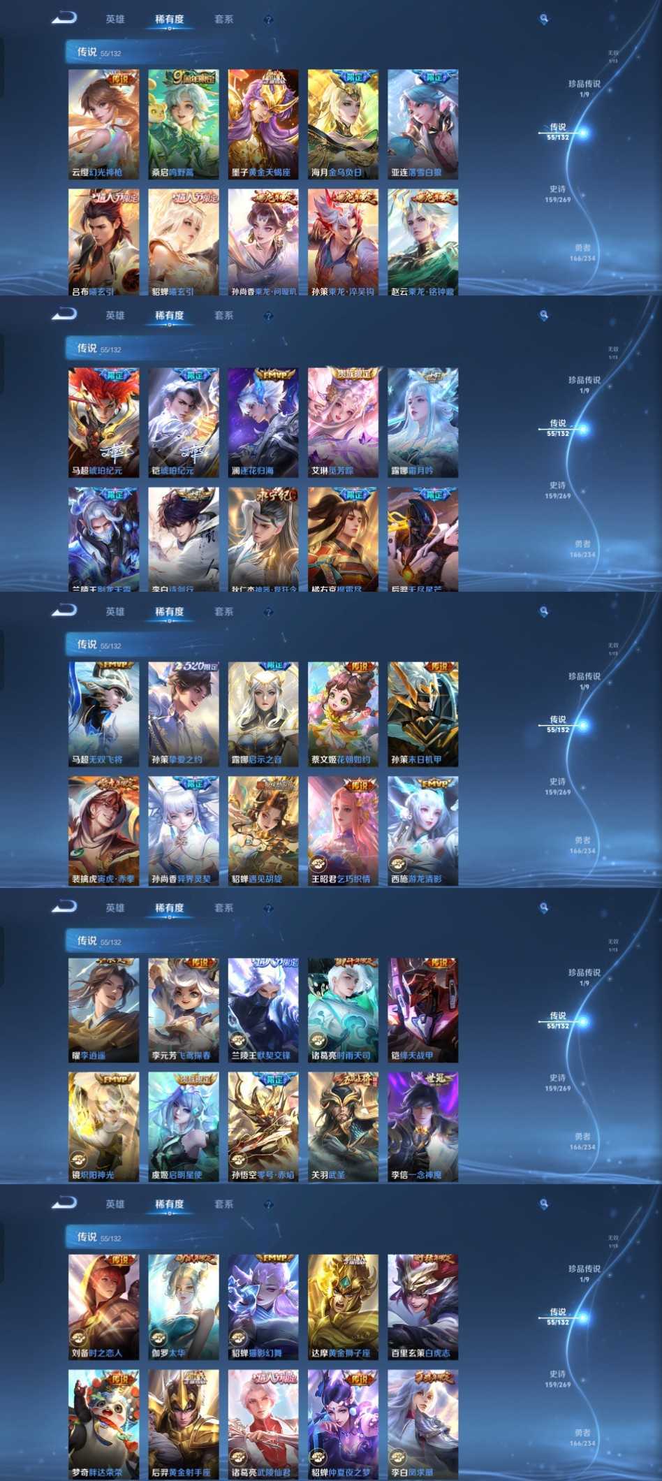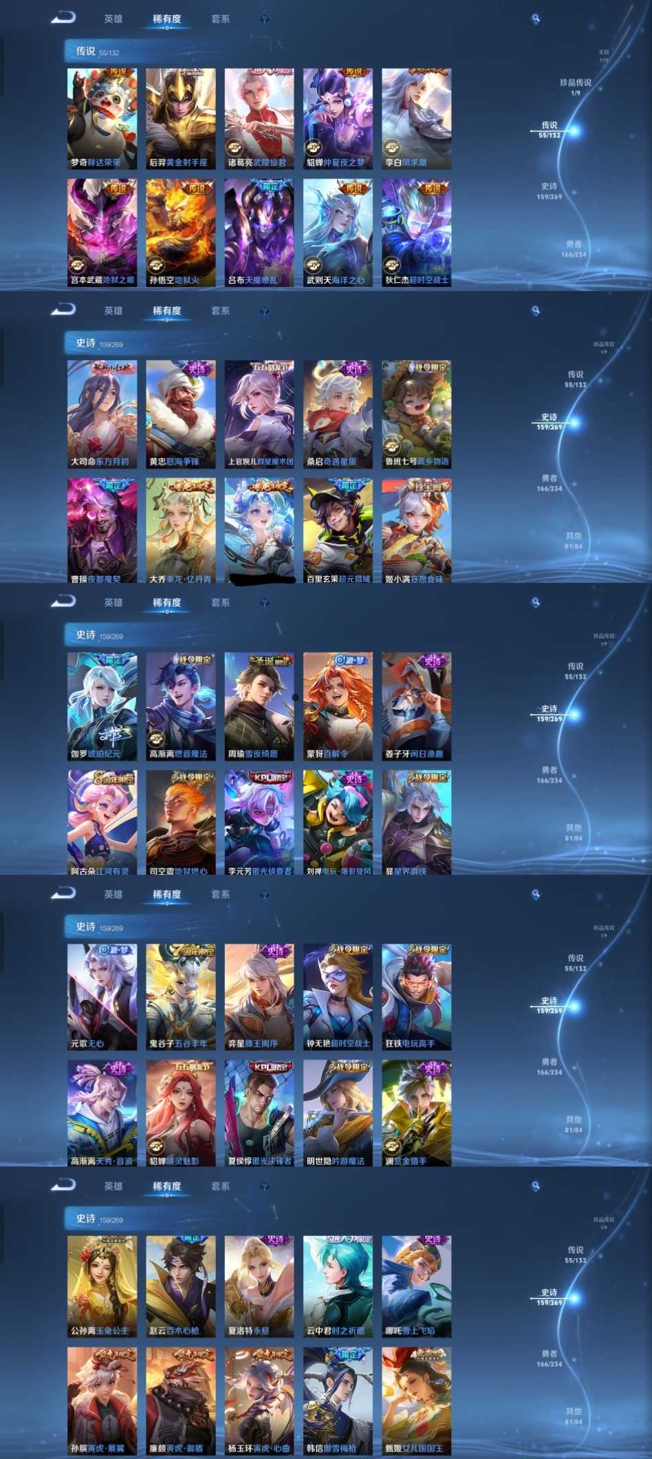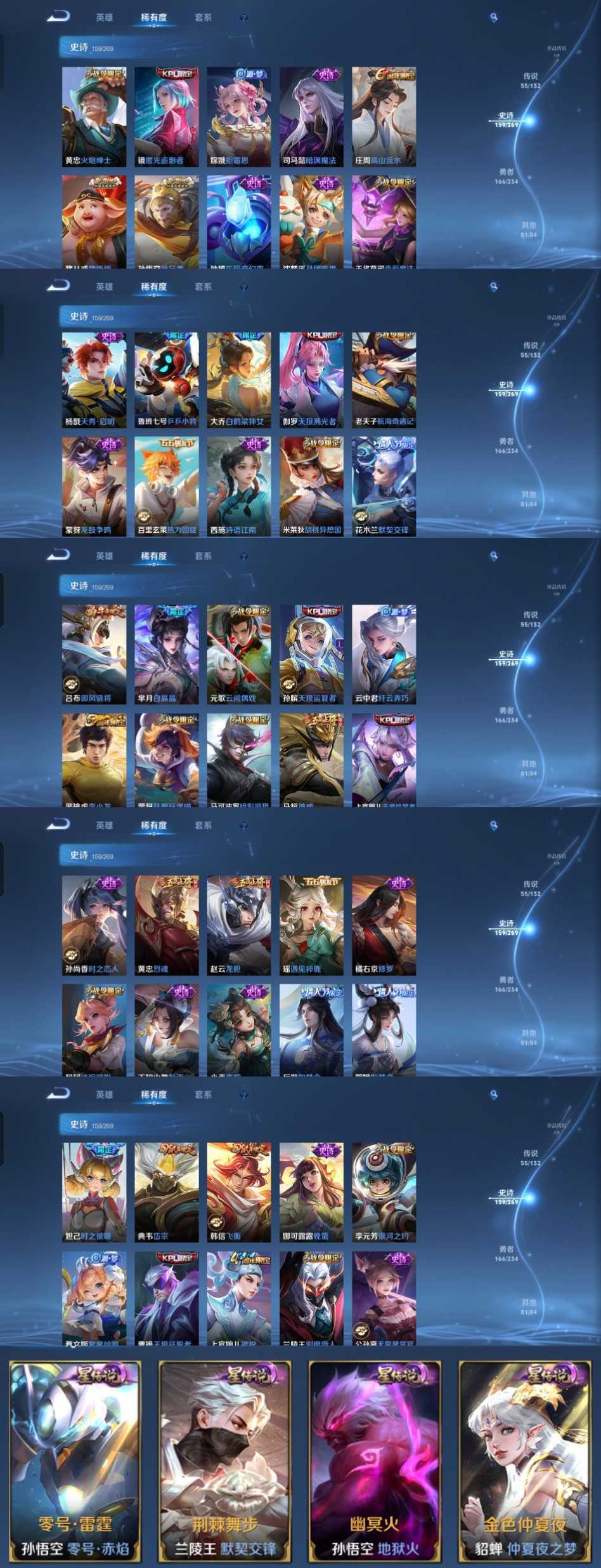 限制: 租号2次及以上 | 撤单率<49%才可租用此帐号装备描述:时间到了还登录白玩或者顶号全部改密拉黑处理永不解除,顶号机器会秒禁玩改密,顶号不仅拉黑还没得玩,赚三两块不容易,请理解谢谢。 ❤❤❤❤❤❤❤❤❤❤❤❤❤❤❤ 请勿开挂,挂机,送头,骂人,撤单后游戏等如有违规永久拉黑永不解除。 重置二级密码不要费劲了,号主每天都会上号查看,多行不义必自毙,人在做天在看,多做好事多自律,少做缺德事。 该号英雄129个皮肤470个,典藏8个,无双1个,珍品传说1个,星传说4个,传说55个,史诗159个,祝你游戏愉快~