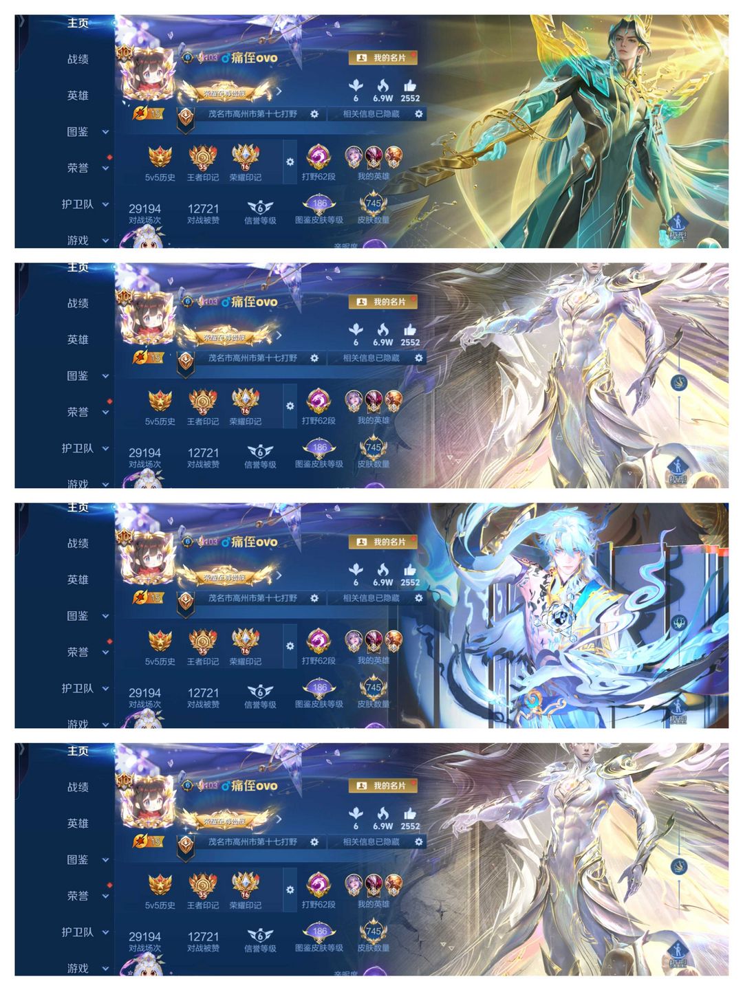 745满皮荣耀贵族♥杨戬纵目迁山凯神罪诸葛亮无双♥大国干将猴阿珂五国服♥穆夏馥梦繁花♥满水满无双