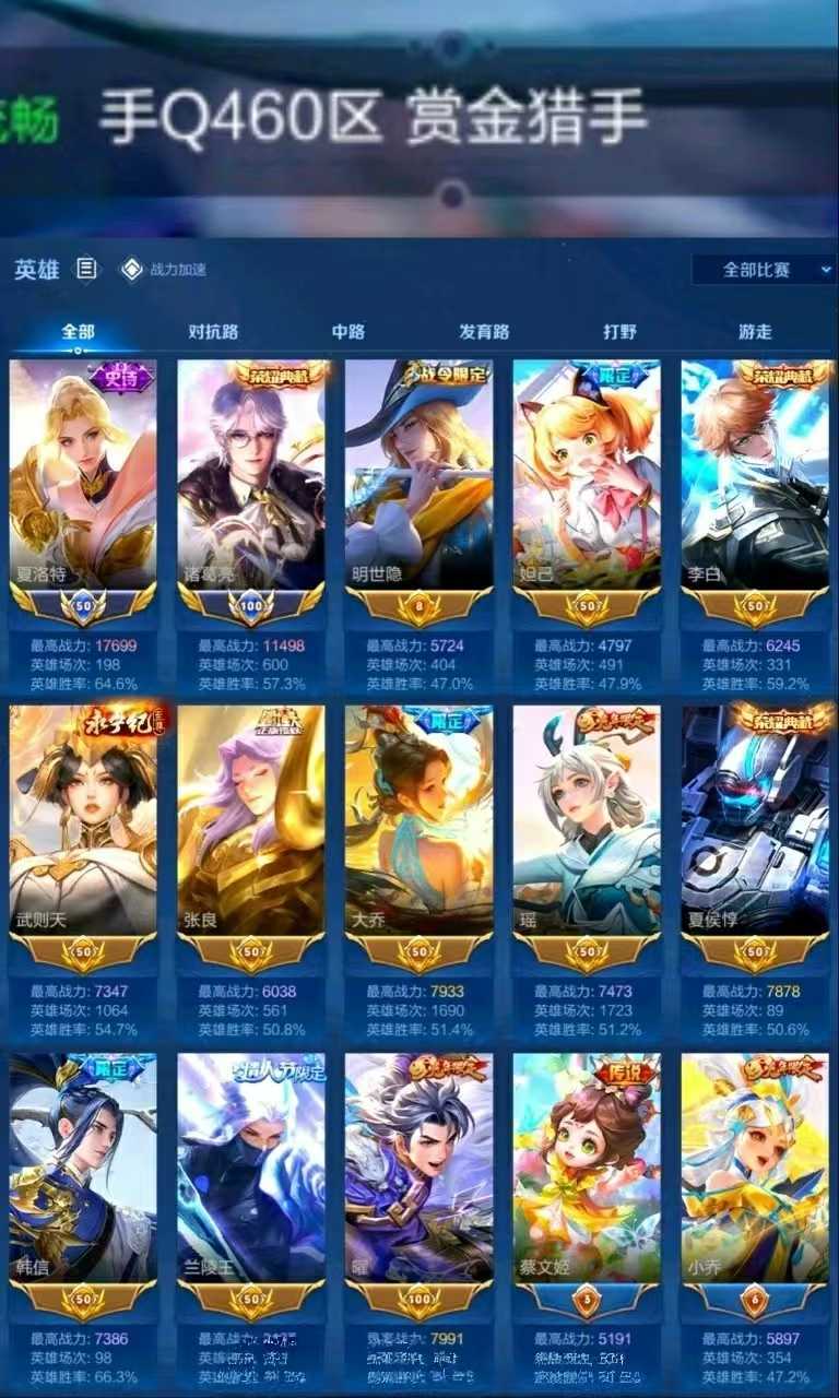 限制: 租号5次及以上 |装备描述:【C52】贵族V10~460皮肤18典藏59传说1无双国服夏洛特诸葛亮11金标明辉仪神鉴启示录,弑枪猎影,活力突击,赤影疾锋,星空梦想,杀手不太冷,大秦宣太后,全息碎影,银白咏叹调,鸣剑·曳影,幻阙歌,九霄神辉,星域神启,倪克斯神谕,无限飓风号,天鹅之梦【优质限定皮肤】:无双飞将,山海·琳琅生,山海·苍雷引,山海·炽霜斩,瑶时之祈愿,云中君时之祈愿,武圣,神威,祈雪灵祝,白虎志