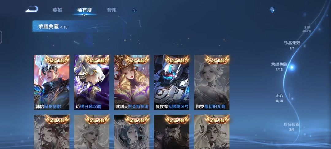 装备描述:V10 400皮5典藏3珍品安琪拉-酷洛米之心大耳狗之梦兔狲·蓬尾弑枪猎影银白咏叹调倪克斯神谕 皮肤数量:400 荣耀水晶:4 [珍品无双皮肤]: [无双数量]:0 [珍品数量]:3 [传说数量]:32 [限定数量]:133 [无双皮肤]: [珍品传说皮肤]:安琪拉-酷洛米之心/瑶-大耳狗之梦/张飞-兔狲·蓬尾 [荣耀典藏]:韩信-弑枪猎影/铠-银白咏叹调/武则天-倪克斯神谕/夏侯惇-无限飓风号 [传说皮肤]:王昭君-乞巧织情/东皇太一-灼幽烈阳/小乔-音你心动/狄仁杰-超时空战士/貂蝉-仲夏夜之梦/艾琳-觅芳踪/桑启-鸣野蒿/铠-冥王哈迪斯/孙策-末日机甲/鲁班七号-寅虎·瑞焰/裴擒虎-寅虎·赤拳/宫本武藏-地狱之眼/西施-游龙清影/镜-炽阳神光/虞姬-启明星使/孙悟空-地狱火/孙悟空-零号·赤焰/关羽-武圣/曜-云鹰飞将/李信-一念神魔/刘备-时之恋人/吕布-天魔缭乱/杨戬-永曜之星/伽罗-太华/孙尚香-末日机甲/貂蝉-猫影幻舞/武则天-海洋之心/干将莫邪-久胜战神/虞姬-云霓雀翎/后羿-黄金射手座/达摩-黄金狮子座/百里玄策-白虎志 [限定皮肤]:后羿-石田雨龙/姬小满-小满鸭/