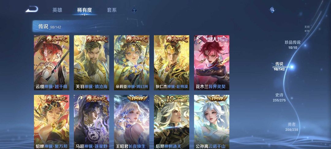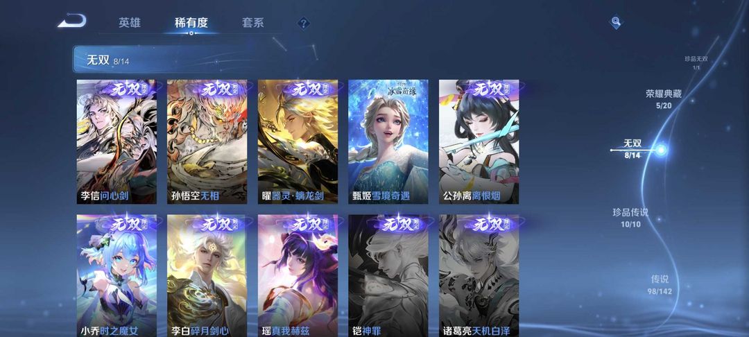 7典藏⚡8无双⚡猴子无双⚡李信无双⚡貂蝉珍品无双⚡满马年限⚡满珍品⚡伽罗珍品⚡木兰~阿珂新皮100传