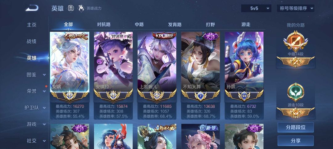 本周省在榜女娲孙膑市海月海诺⭐74段中路⭐历史大国服女娲安琪拉