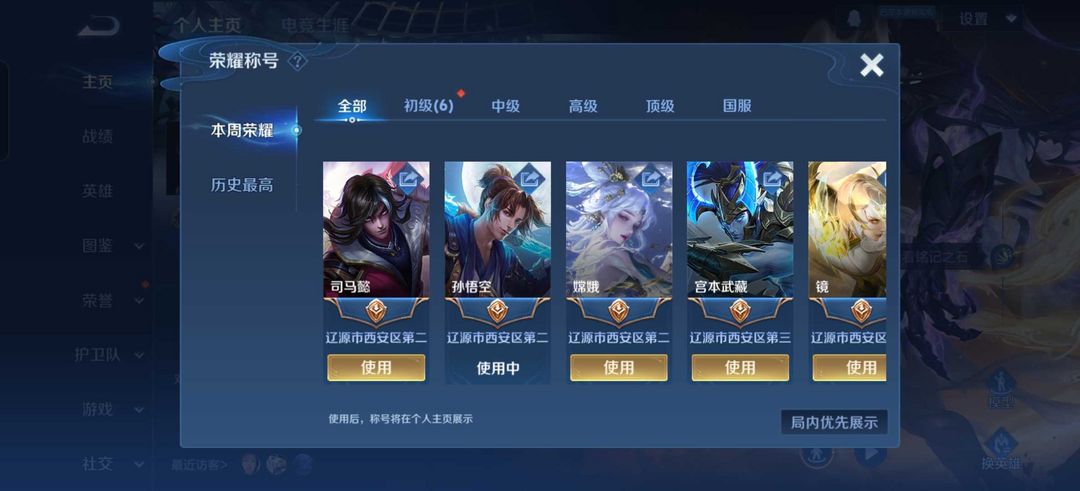 84段1w6战力历史国服司空震国服镜梦琪国服孙悟空国服宫本武藏❤️小国标曜裴擒虎岁月剑心神罪琥珀纪元