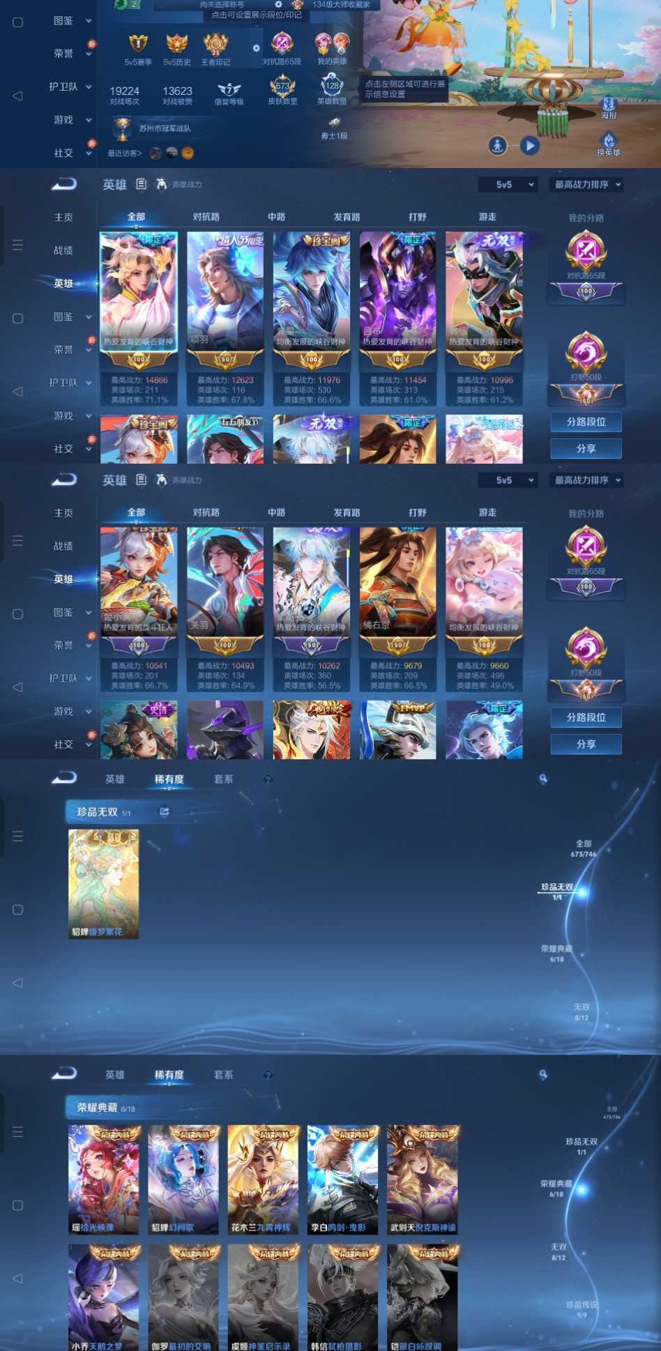 限制: 租号1次及以上 | 撤单率<49%才可租用此帐号装备描述:禁止改名,改名秒顶申诉拉黑,时间到了还登录白玩或者顶号全部改密拉黑处理永不解除,顶号机器会秒禁玩改密,顶号不仅拉黑还没得玩,赚三两块不容易,请理解谢谢。 ❤❤❤❤❤❤❤❤❤❤❤❤❤❤❤ 请勿开挂,挂机,送头,骂人,撤单后游戏等如有违规永久拉黑永不解除。 重置二级密码不要费劲了,号主每天都会上号查看,多行不义必自毙,人在做天在看,多做好事多自律,少做缺德事。 该号英雄128个皮肤681个,珍品无双1个,典藏7个,无双10个,珍品传说9个,星传说5个,传说108个,史诗247个,祝您游戏愉快~