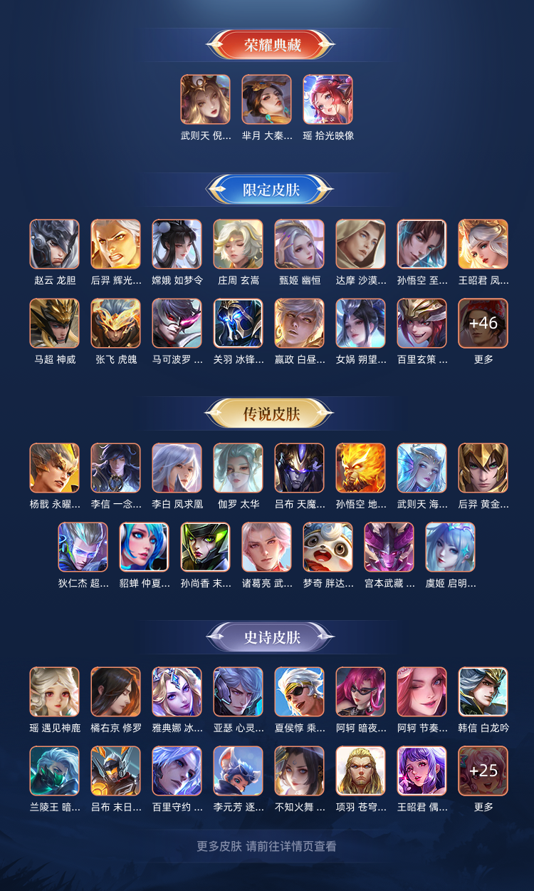 瑶妹典藏V10拾光映像3典藏 312皮 天魔缭乱/至尊宝/热情桑巴/梅西/白虎志/飞衡/倪克斯神谕