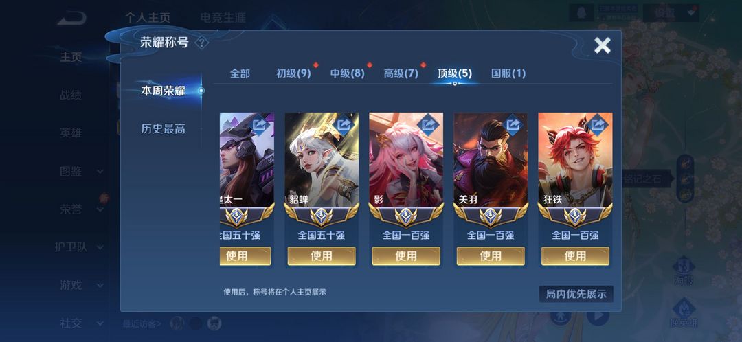 大国标东皇4小国狂铁影貂蝉关羽在榜省曹操⭐巅峰对抗千强闪电框⭐可排位/禁巅峰