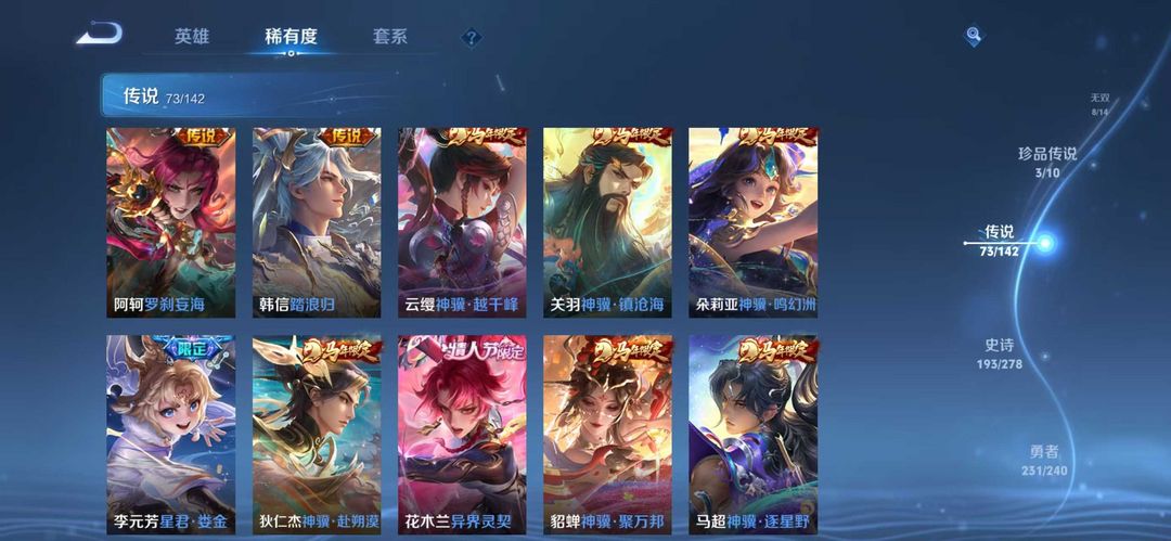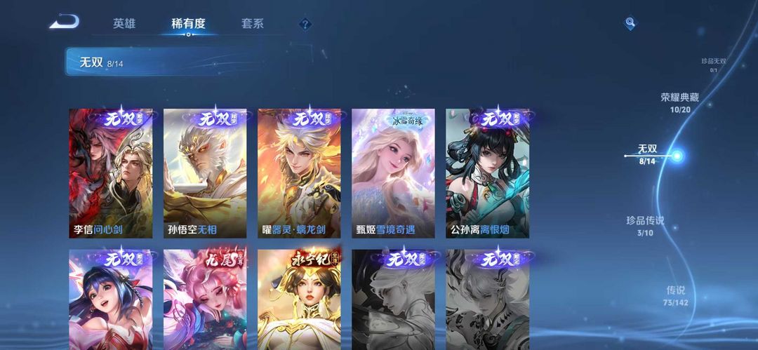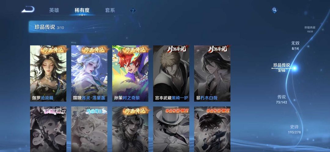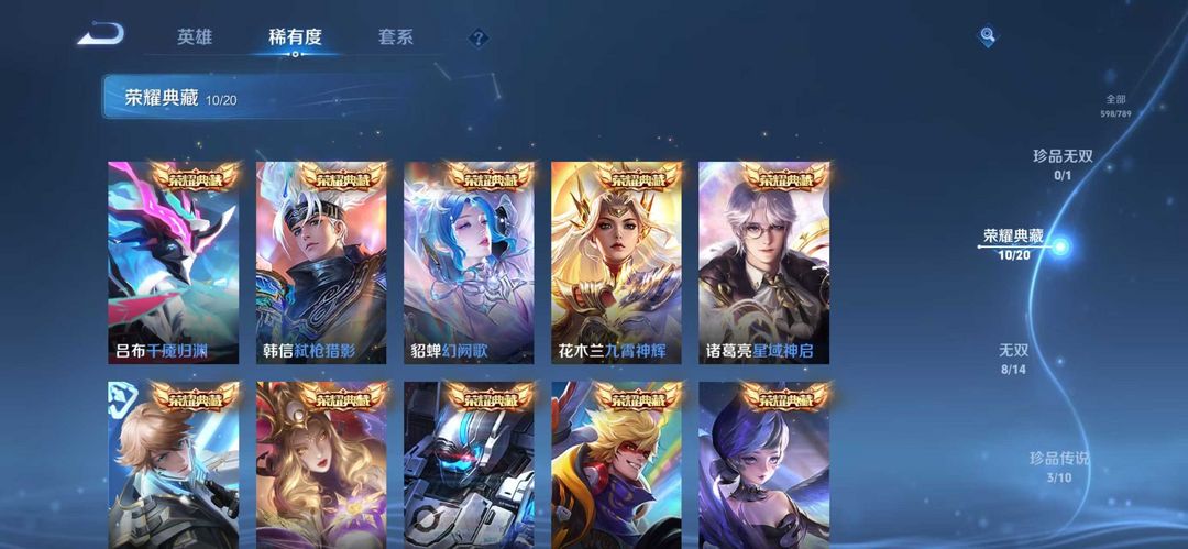 598皮⚡10典藏8无双3珍品⚡罗刹妄海马年全套李信无双伽罗珍品木兰情人节无相猴子吕布典藏李元芳累充