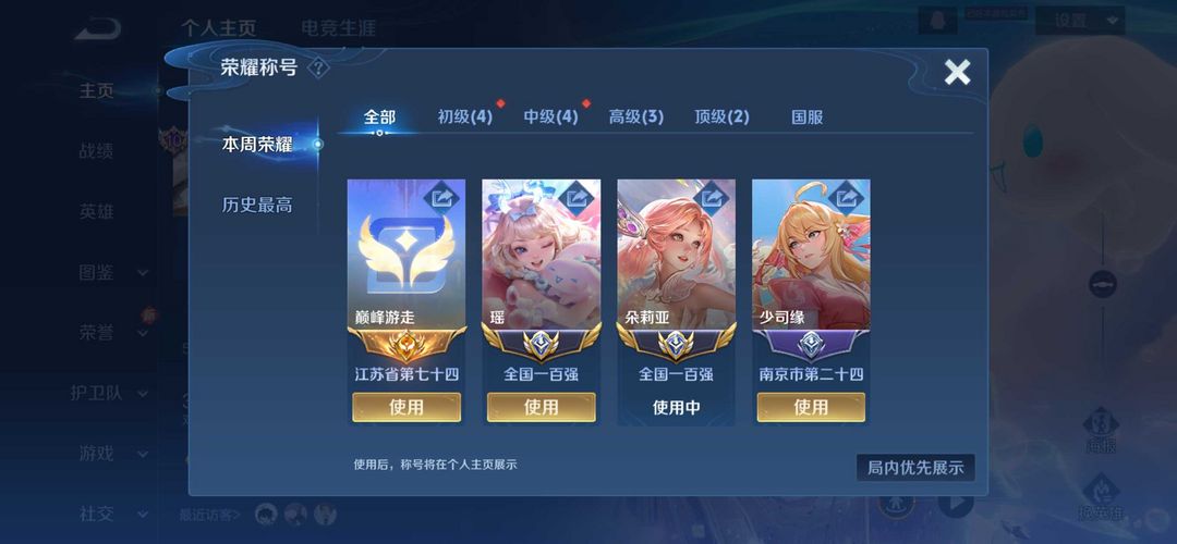 在榜国服瑶/朵莉亚❤️禁巅峰万强2028闪电框❤️744皮满水晶满无双❤️三小兵-大耳狗/狐妖/KT