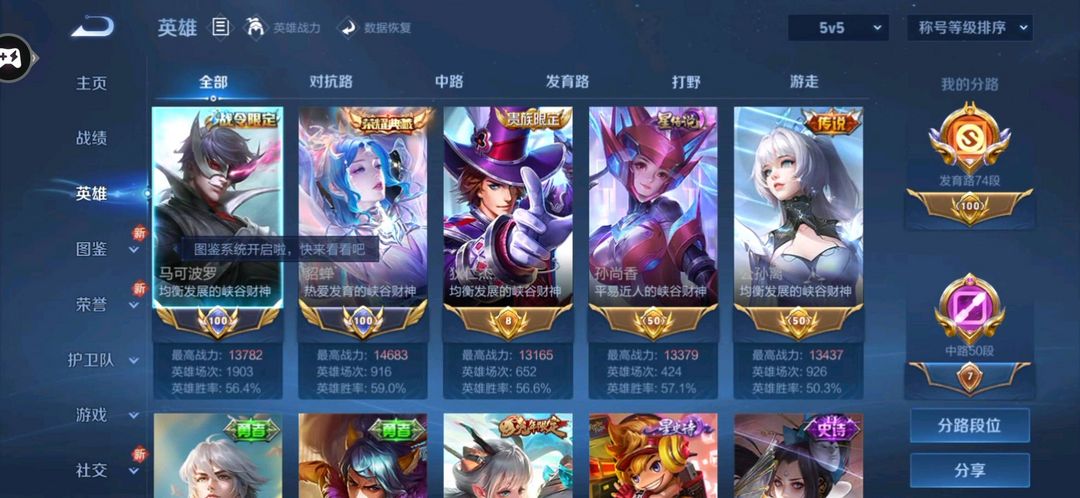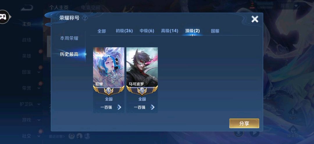 历史小国标马可国服小国标貂蝉国服/74段发育50段中路/14金标万战阿离火舞香香韩信狄仁杰