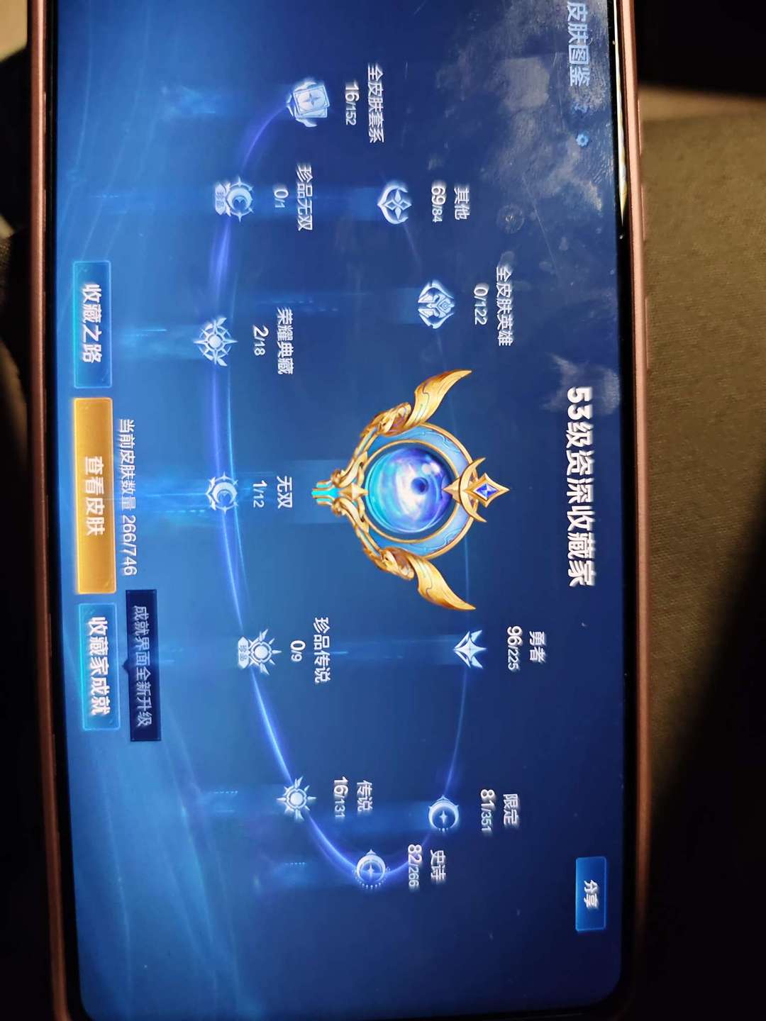 30级266个皮肤,除武则天全英雄,可排位,白虎志碎月剑心星域神启至尊宝梅西五虎上将大话西游全套