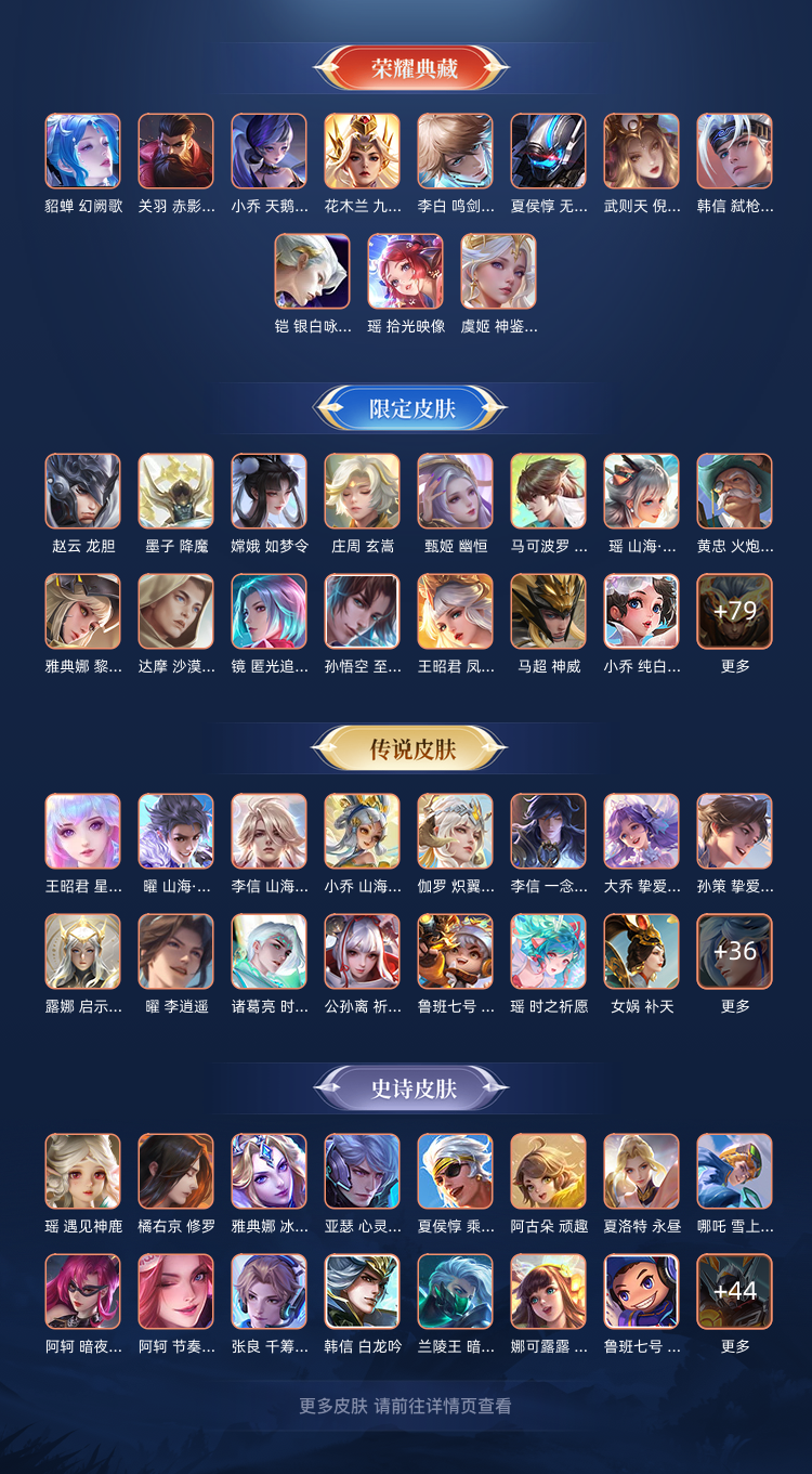 女号不禁言❤️貂蝉馥梦繁花❤️大乔小乔瑶蔡文姬朵莉亚全皮❤️瑶拾光映像紫瑶❤️小乔时之魔女❤️