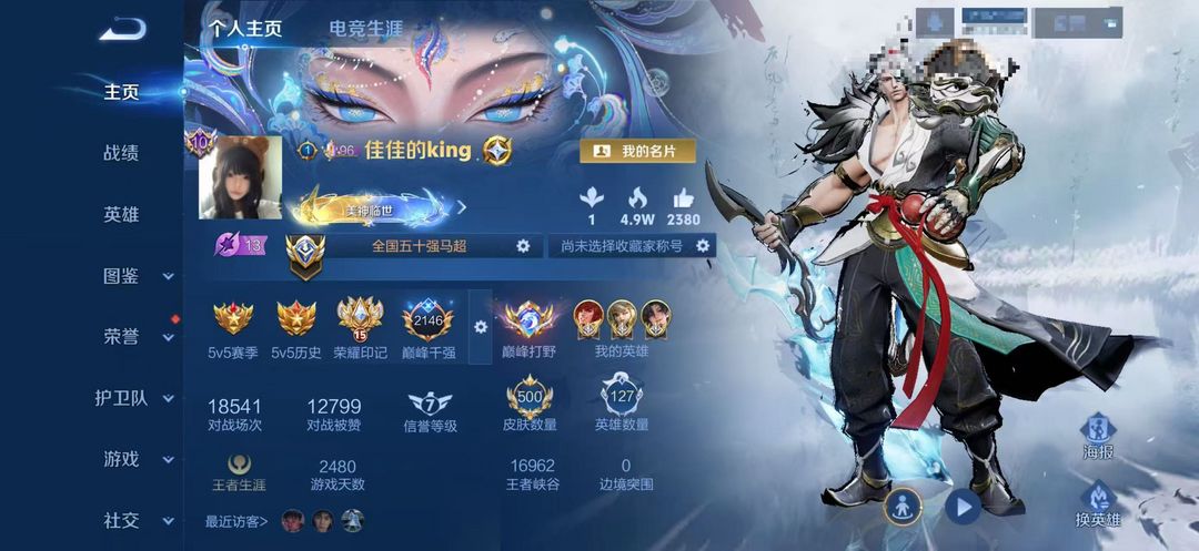 巅峰2146千强闪电框⚡️省标镜马超杨戬在榜50强/局内显示414名/国服带妹推荐号⭐️可排位禁巅峰