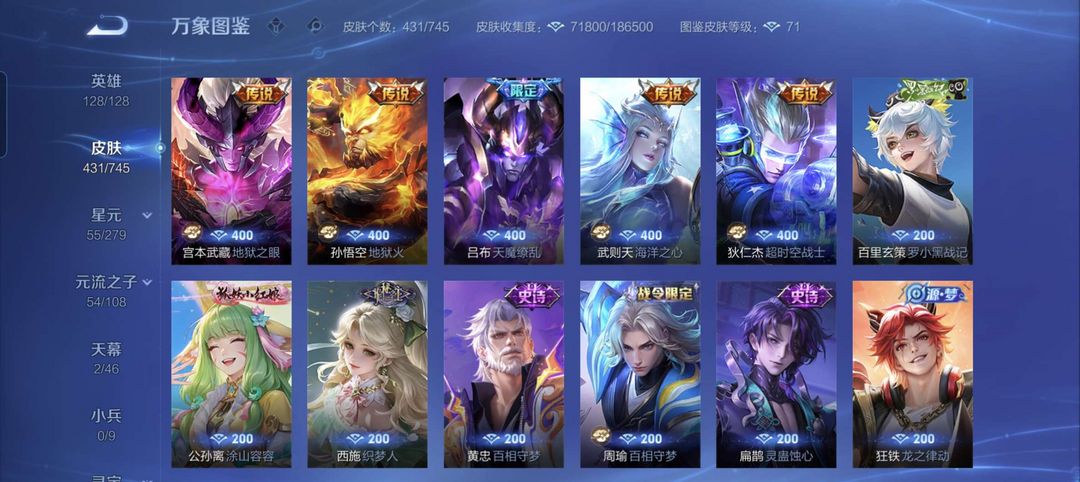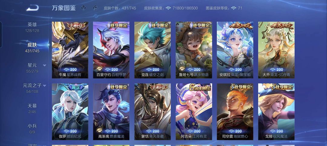 装备描述:☁️5典藏4星元☁️ 打野30段 ☁️法师25段 ☁️ 超多限定传说皮肤 ☁️物超所值! ☁️欢迎各位大佬体验 ☁️游戏禁止挂机!使用非法软件如若造成封号追究刑 事责任。 ☁️ 祝各大佬保持良好的游戏体验!谢谢