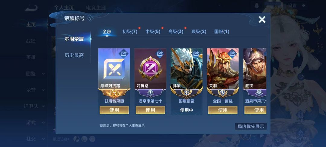 游戏区服:王者荣耀-QQ安卓-QQ账号