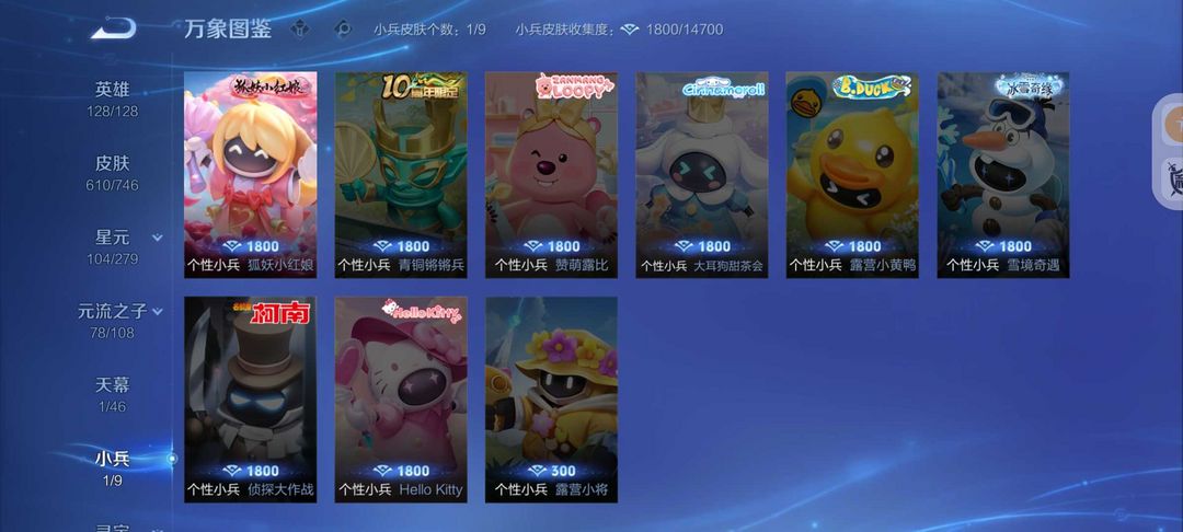 610全新皮❤️kitty小兵❤️6无双❤️91传说❤️花合斗❤️倪克斯神谕❤️满蛇年限定❤️