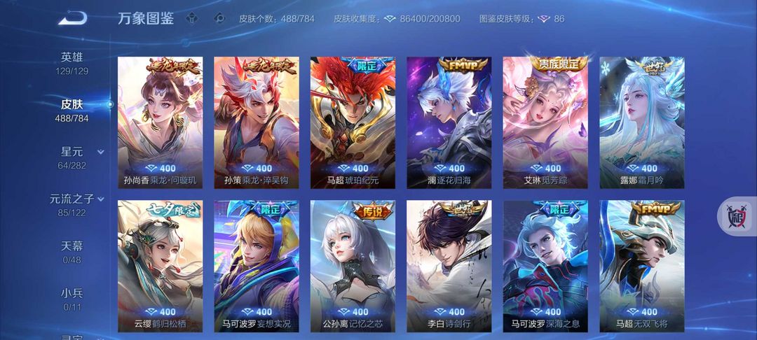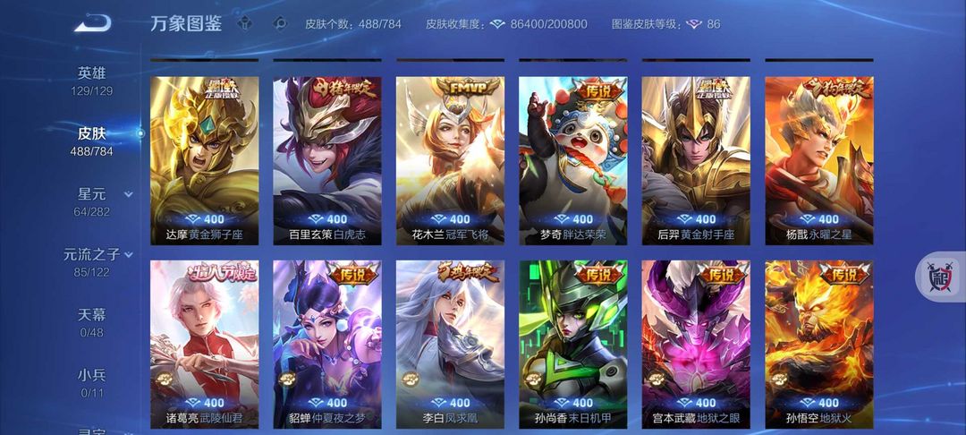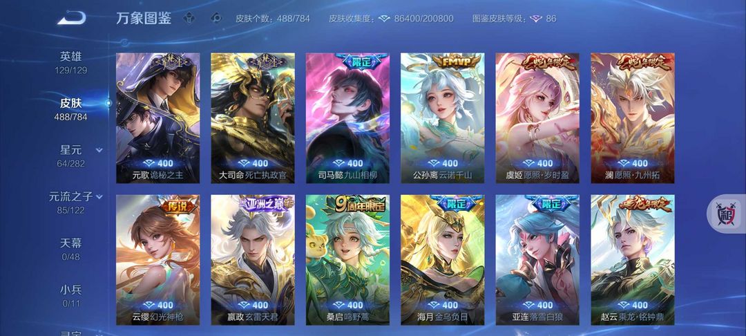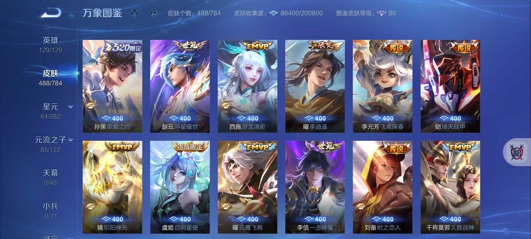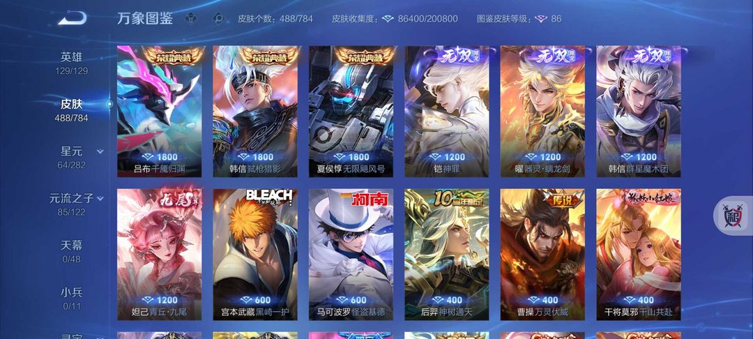 装备描述:488皮肤❤️全新❤️凯神罪❤️满蛇年❤️新珍品❤️无双❤️怪盗基德❤️诡秘之主❤️