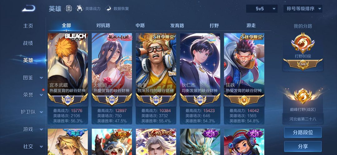80段打野在榜省标⭐️国服宫本大司命典韦狄仁杰多在榜市标⭐️黑崎一护基德多热门限定⭐️传奇称号天幕