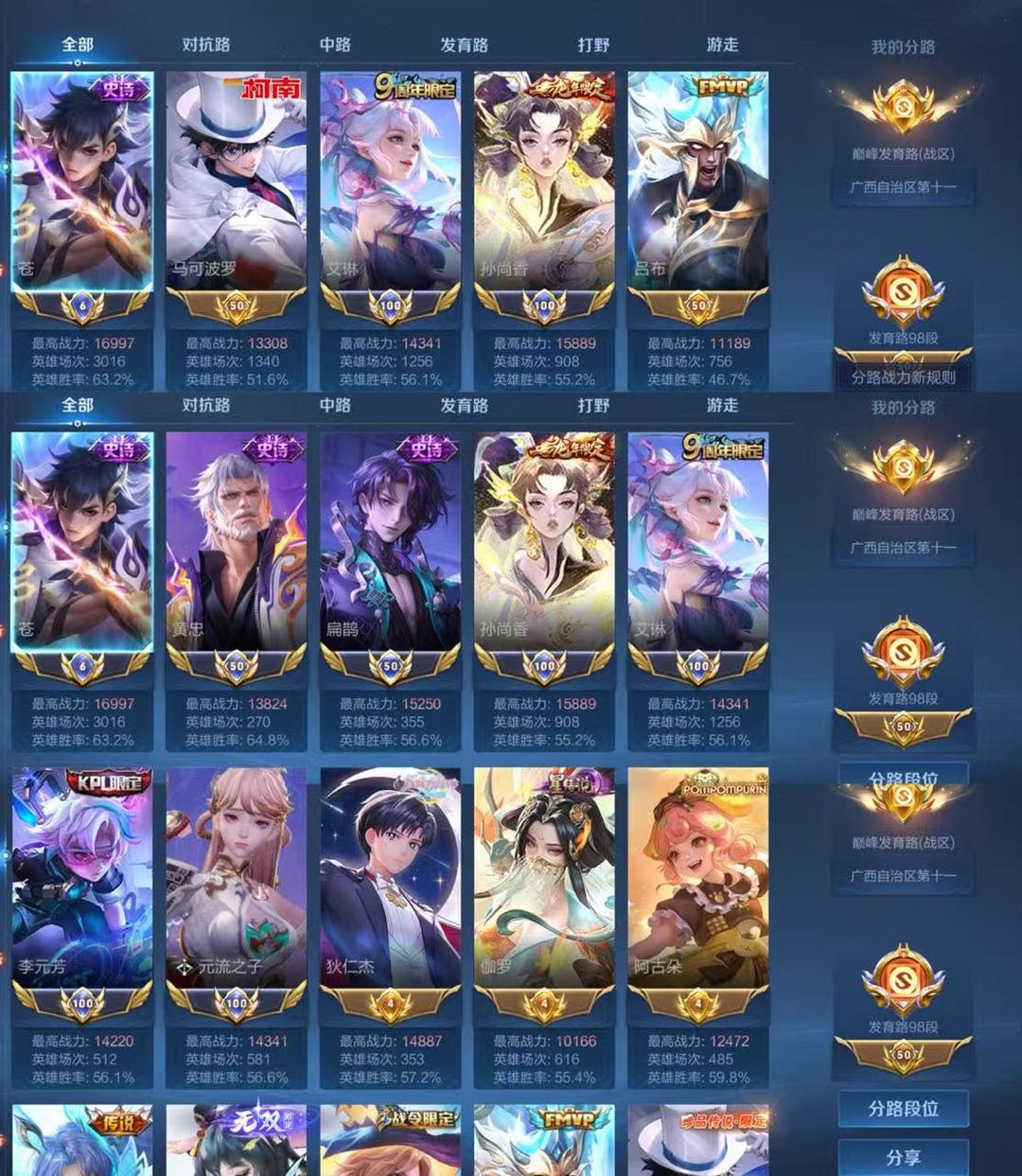 可排没禁言❤在榜98段巅峰发育路❤7个小国❤按键多