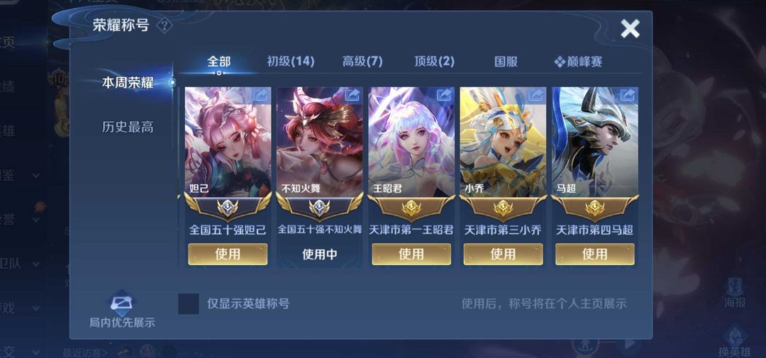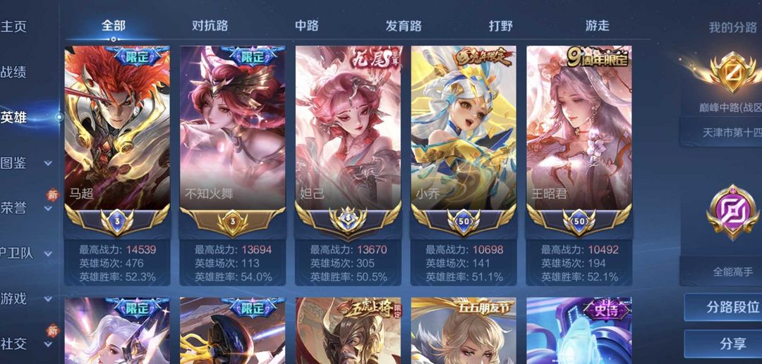 在榜小国妲己不知火舞⭐v10⭐历史国3马超。现在没在榜大国了。可以排位禁止巅峰赛谢谢