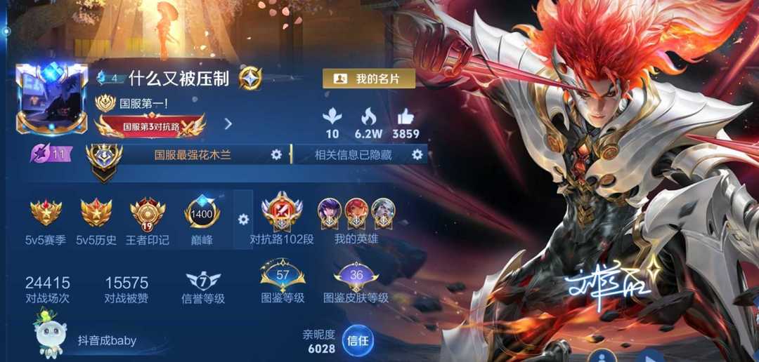 102段国服第3对抗路✨四月在榜3国服花木兰蚩姹杨戬✨1w8国服马超✨16个大国标✨可排位禁巅峰