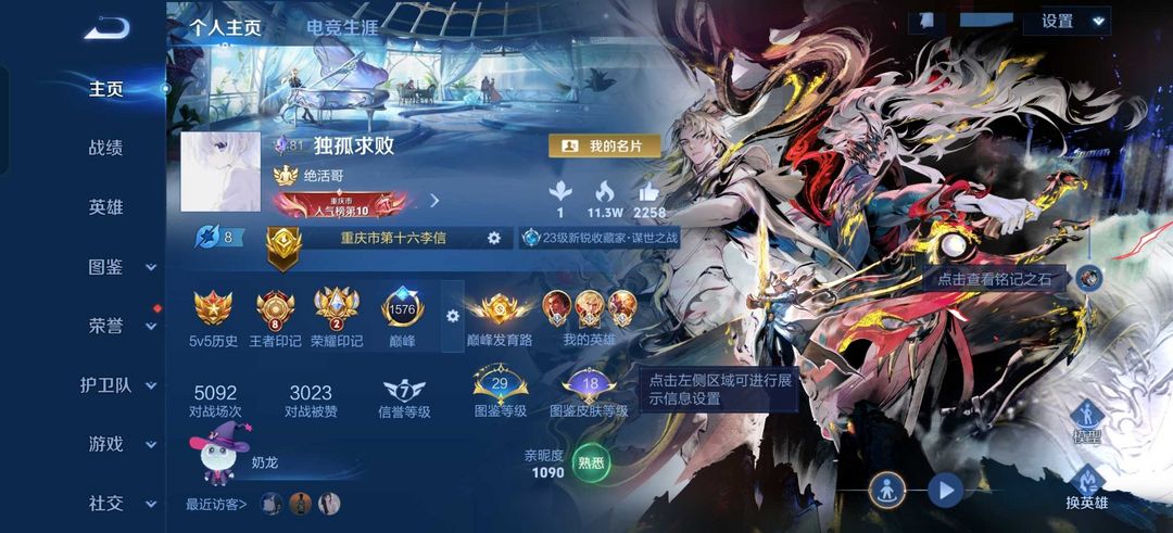 四月在榜省标李信全皮肤暃历史1w56战力国服李信(问心剑)朽木白哉❤️巅峰1500+项羽孙悟空马超