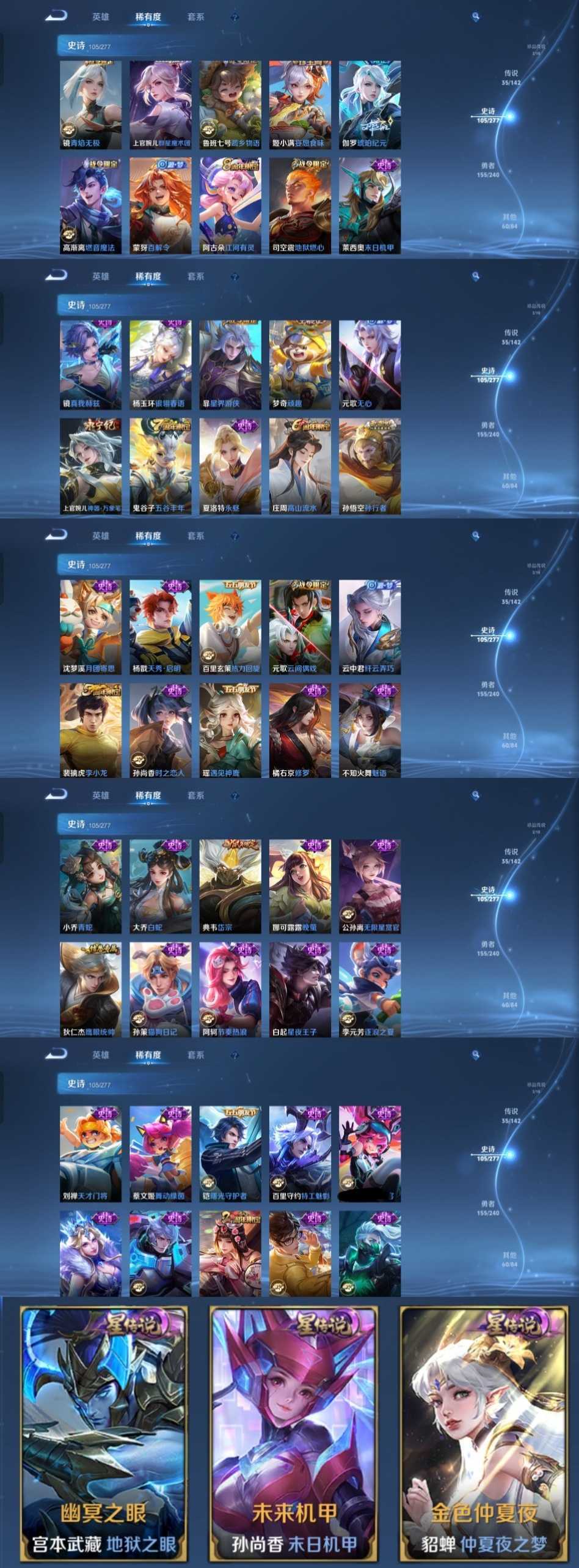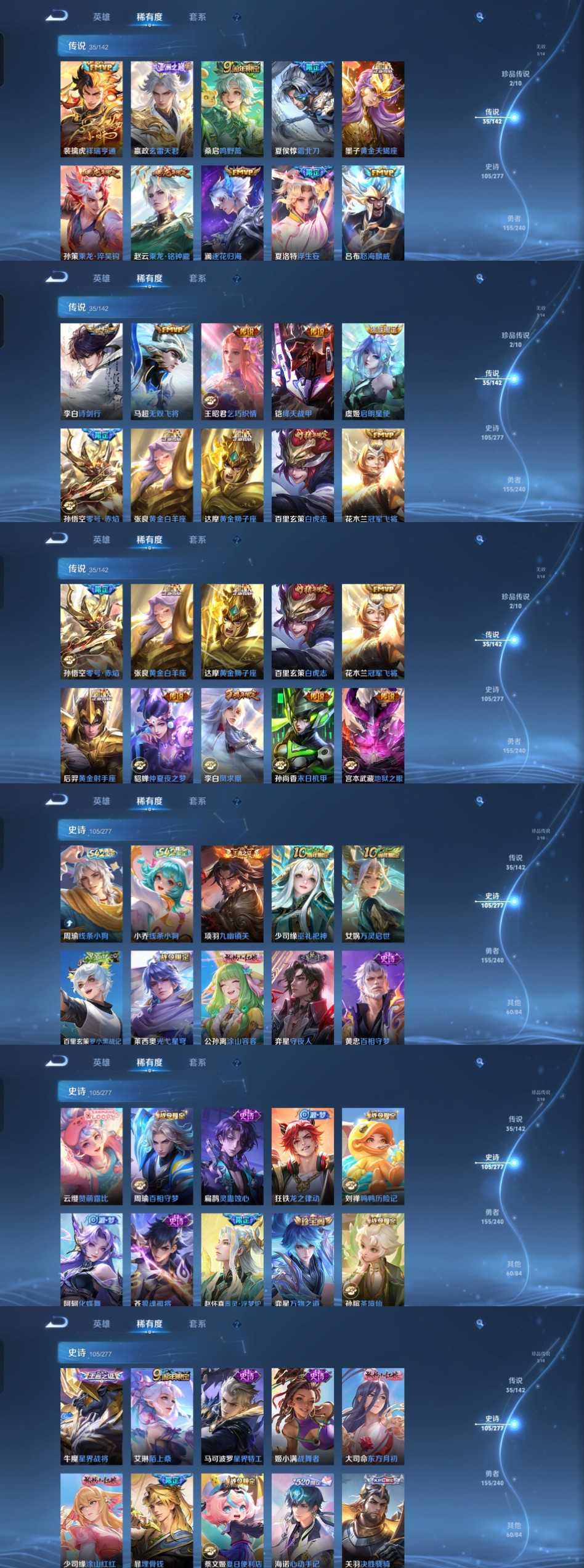 限制: 撤单率<49%才可租用此帐号装备描述: 该号英雄129个皮肤363个,典藏3个,无双3个,珍品传说2个,星传说3个,传说35个,史诗105个,祝您游戏愉快~