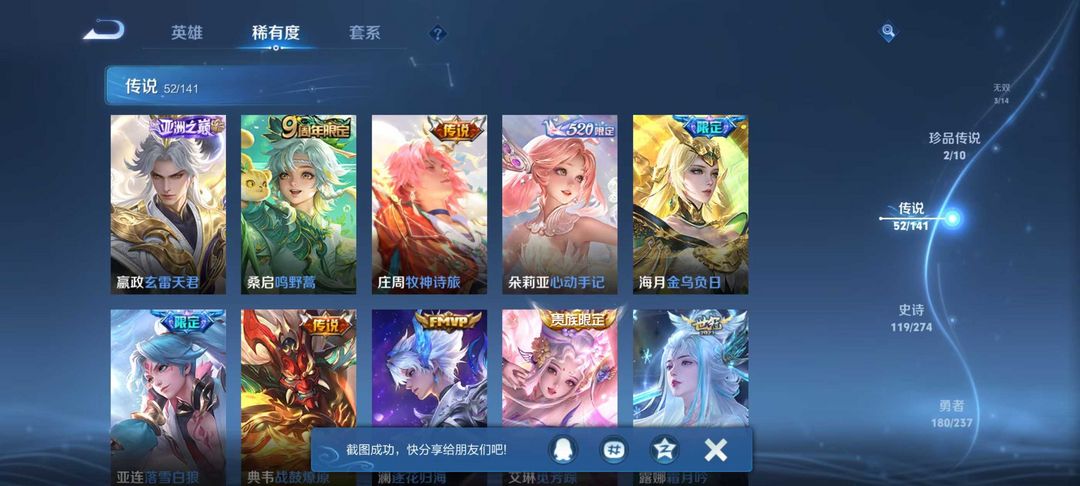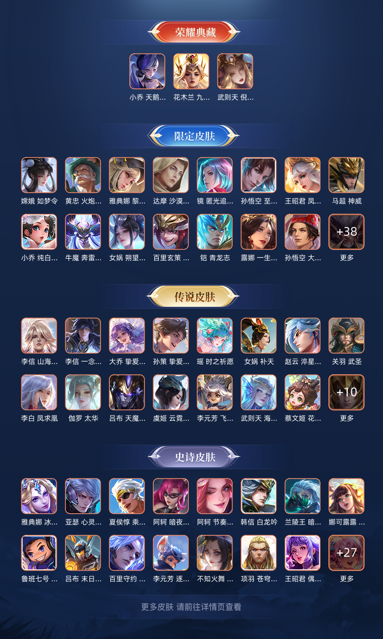 不禁言女号 沧流箭落星盏天鹅梦✨六十款传说皮肤四个典藏三无双两珍品