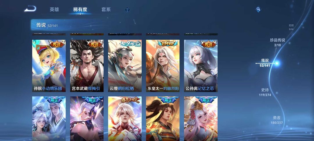 限制: 租号4次及以上 | 撤单率<30%才可租用此帐号装备描述:毁号,涉及毁坏虚拟财产罪及计算机安全罪,请文明游戏素质游戏,让我们共建美好租号平台 本游戏账号: V10无双贵族用户基础段位:最强王者英雄多皮肤多。典藏皮肤15个感受典藏皮肤带来的优质体验快感FMVP皮肤10个尽情享受FMVP皮肤带来的主角光环 私人所属英雄皮肤有:瑶 拾光映像韩信 弑枪猎影貂蝉 幻阙歌关羽 赤影疾锋花木兰 九霄神辉诸葛亮 星域神启程咬金 活力突击李白 鸣剑·曳影孙悟空 全息碎影武则天 倪克斯神谕鲁班七号 星空梦想孙尚香 杀手不太冷夏侯惇 无限飓风号芈月 大秦宣太后小乔 天鹅之梦等等 注意事项: A.游戏过程中请不要恶意挂机或者不文明发言B.恶意挂机、顶号等行为将被拉黑无法再次下单C.进入游戏后中途请勿退出登陆,否则无法再次上号D.部分账号由于异地登录可能会出现密码错误提示,通常再尝试5-6次后可上号。 喜欢本账号请点 ☆收藏☆ 方便下次租用,谢谢光临惠顾
