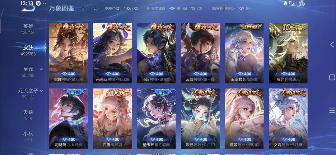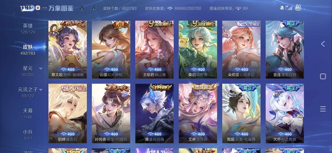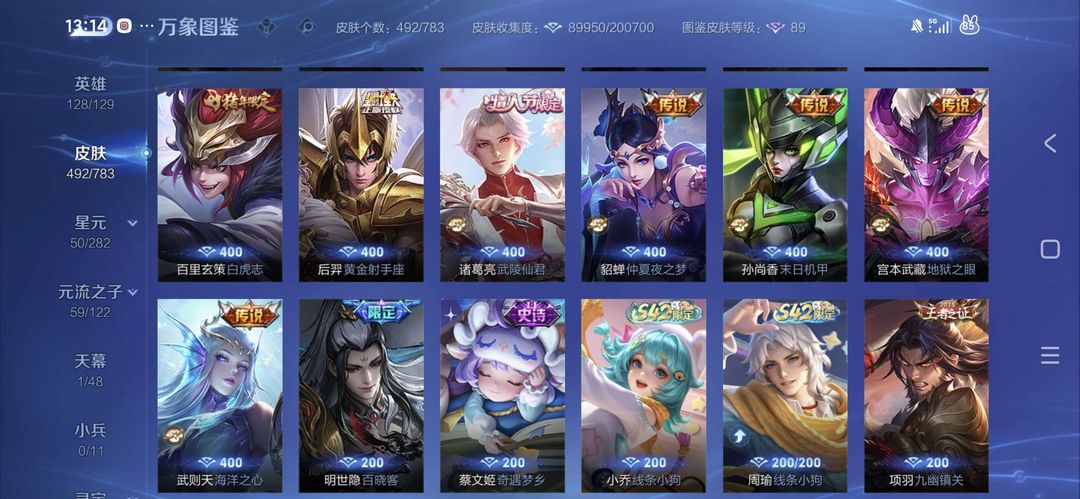 498皮V10银标在榜4个3典藏安琪拉瑶小乔5无双小乔公孙离甄姬不知火舞瑶全皮大乔全皮马限全套
