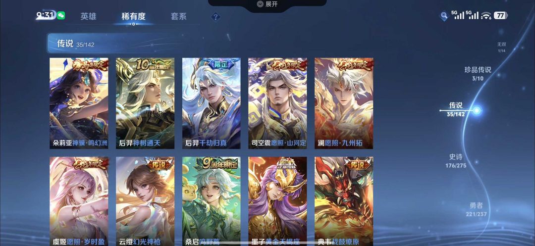 70段中路50段游走 两小国嫦娥杨玉环✨狐妖小兵皮 马年限定千魇归渊✨五个典藏四十款传说五星传说