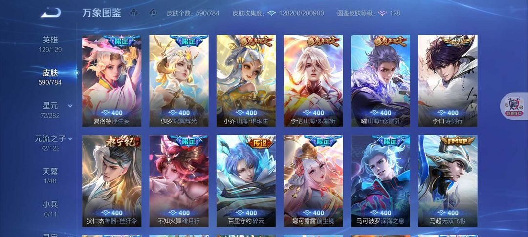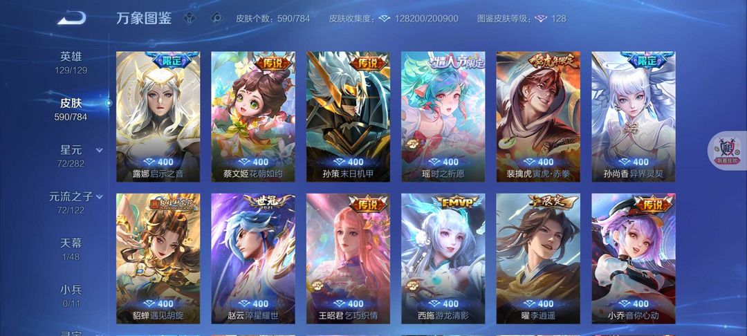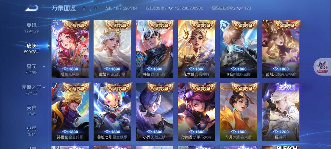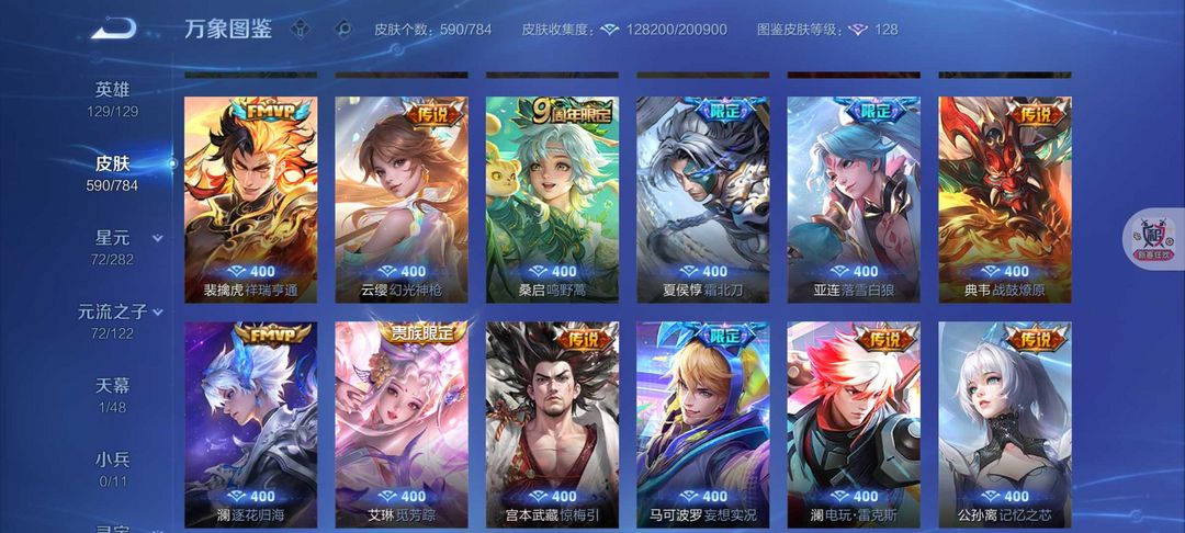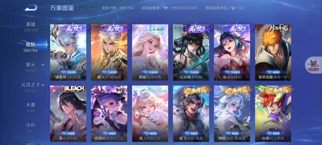 590皮肤12典藏6无双❤️80传说8珍品❤️凯神罪死神联动天机白泽离烟恨花合斗螭龙剑真我赫兹❤️满