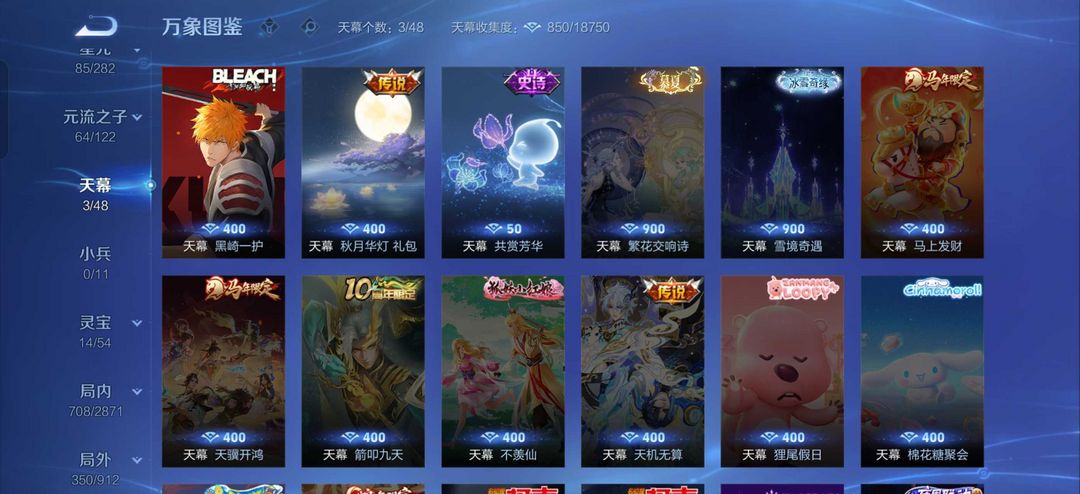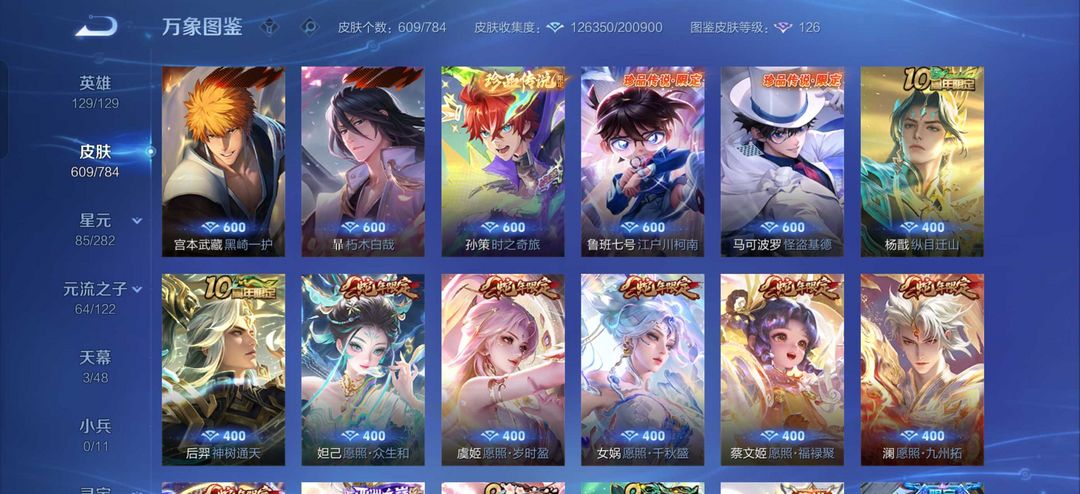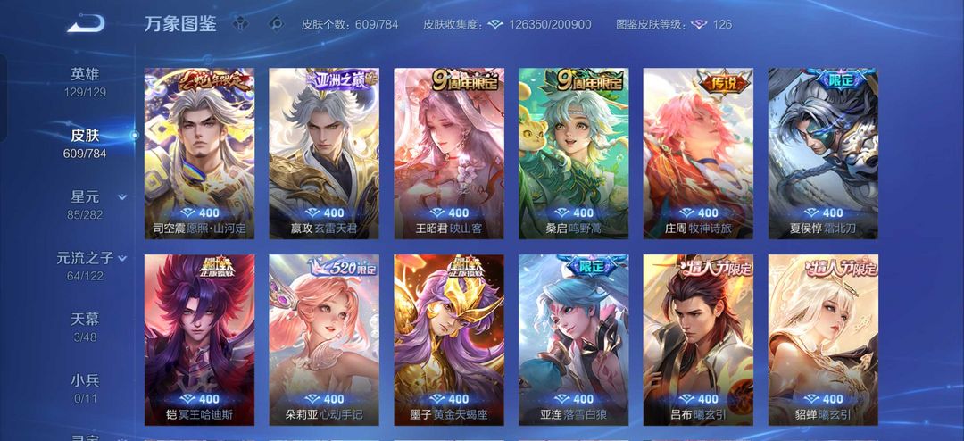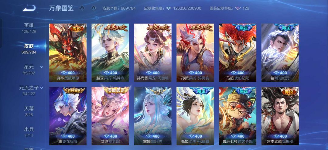 贵族10 609皮7典藏5无双5珍品传说93传说满蛇年杨戬10周年