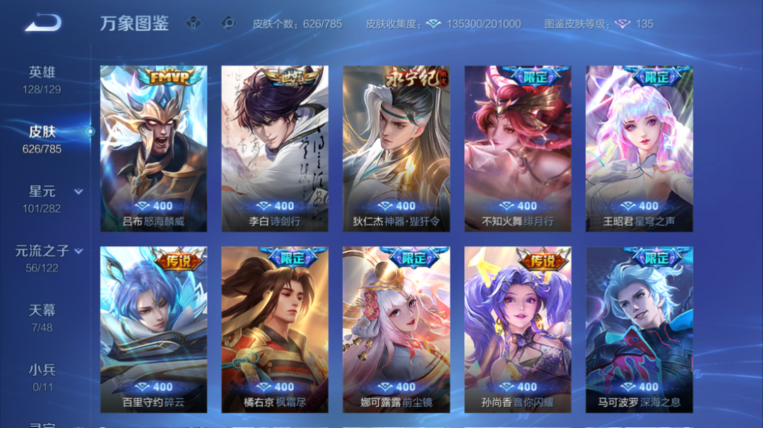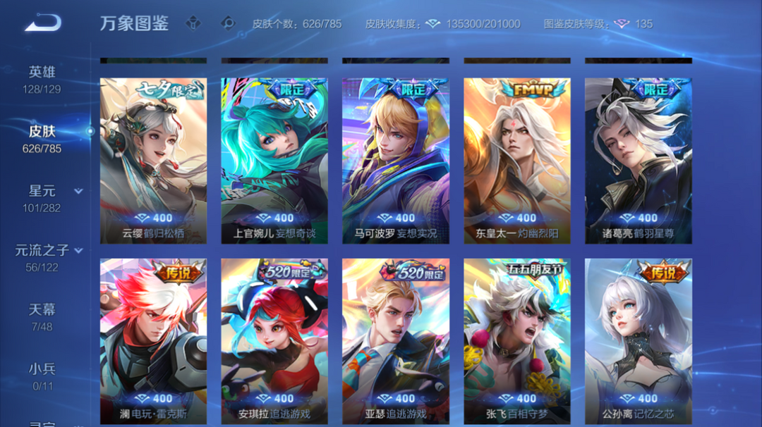 十典藏♥6无双♥6星传说♥10FMVP♥情人节限定♥多年限♥多世冠