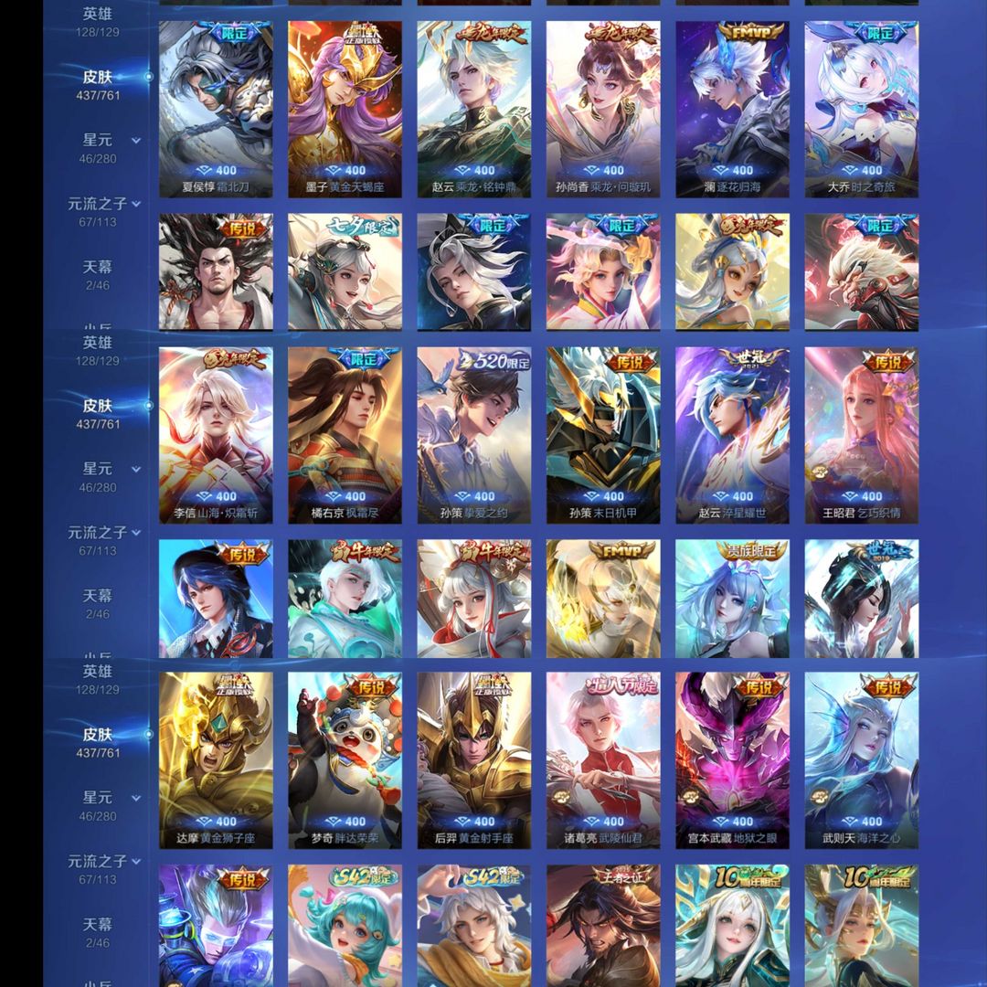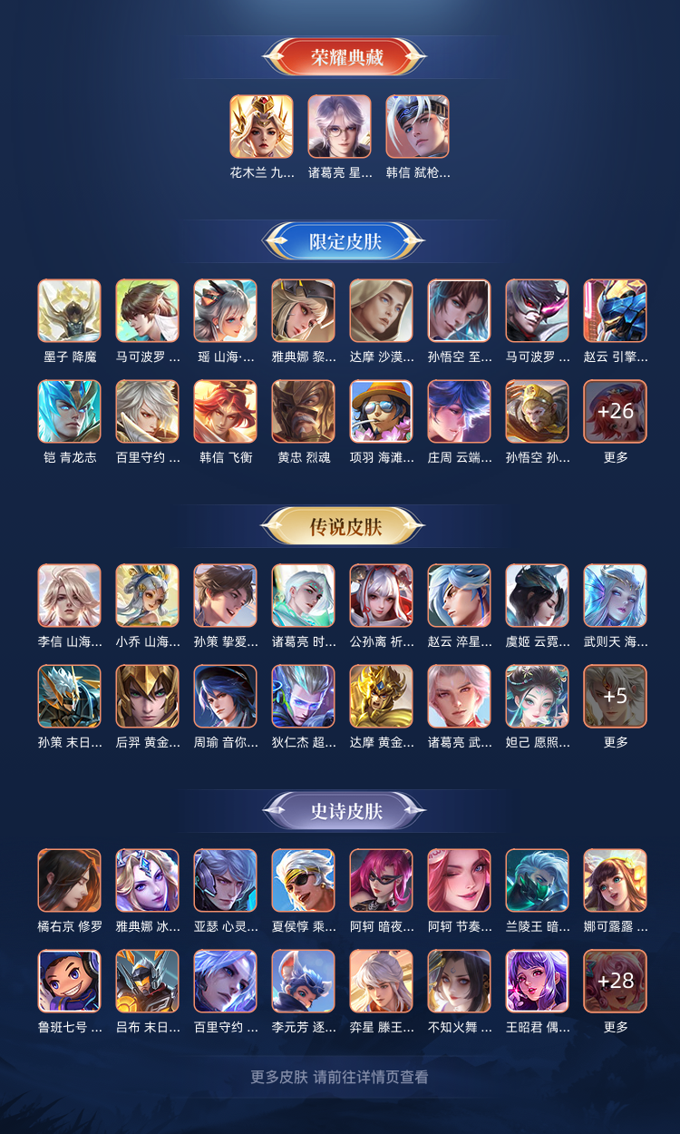 限制: 租号10次及以上 |装备描述:阿轲全皮,元歌全皮,司马懿全皮,孙权全皮,橘右京全皮,蒙恬全皮,云缨全皮,戈娅全皮,空空儿全皮,影全皮,少司缘全皮 【典藏】花木兰九霄神辉,韩信弑枪猎影,诸葛亮星域神启 【珍品无双】貂蝉馥梦繁花 【无双】小乔时之魔女,曜器灵螭龙剑 【珍品】马可波罗怪盗基德,孙策时之奇旅,嫦娥器灵落星盏,张飞兔狲蓬尾,瑶大耳狗之梦,安琪拉酷洛米