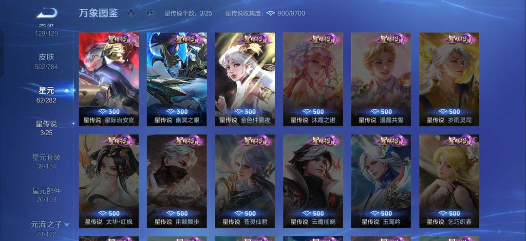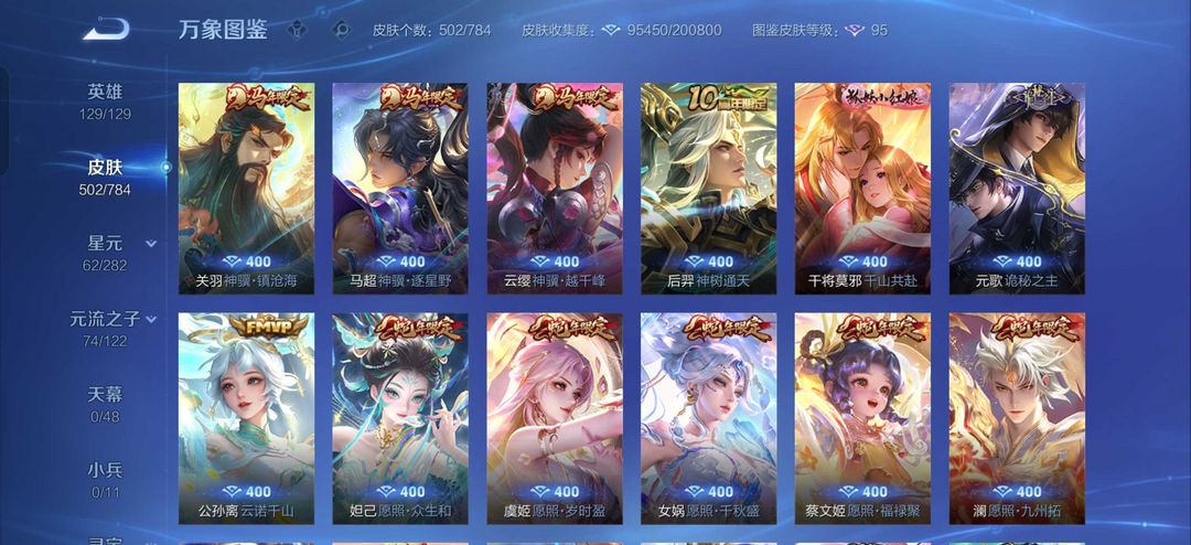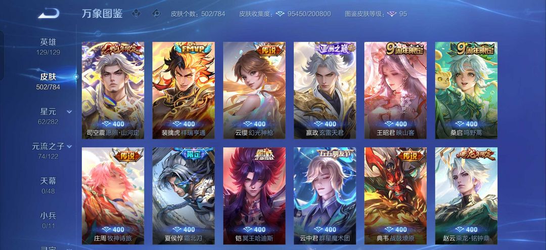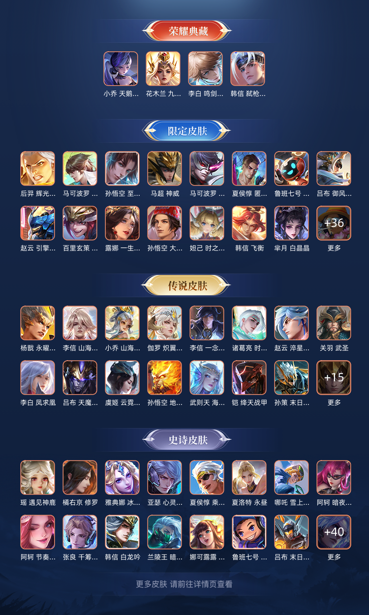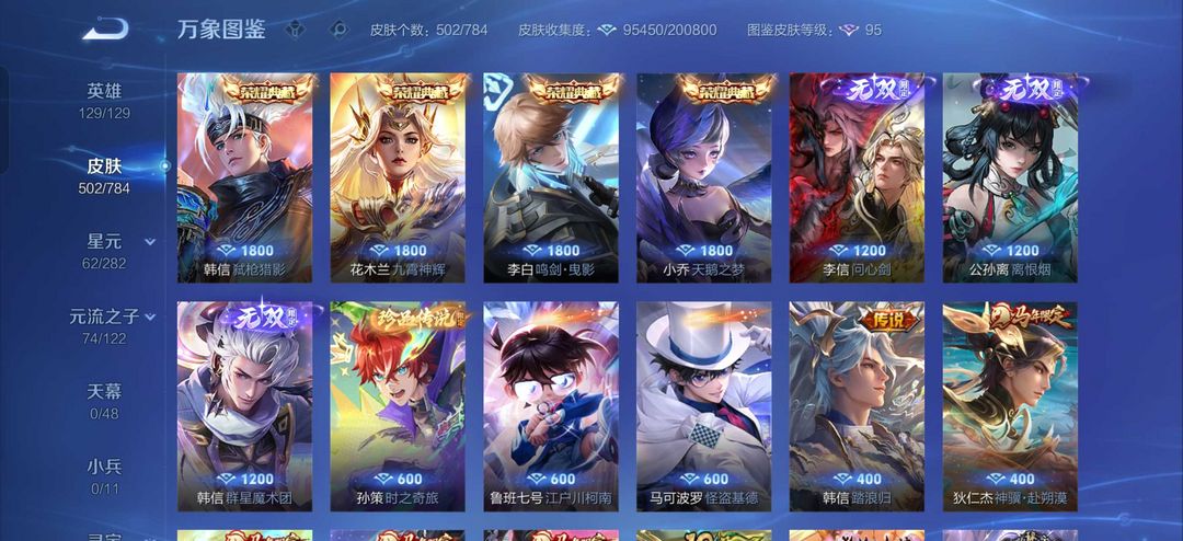 贵族10 502皮4典藏3无双3珍品传说73传说4马年限定韩信新传说