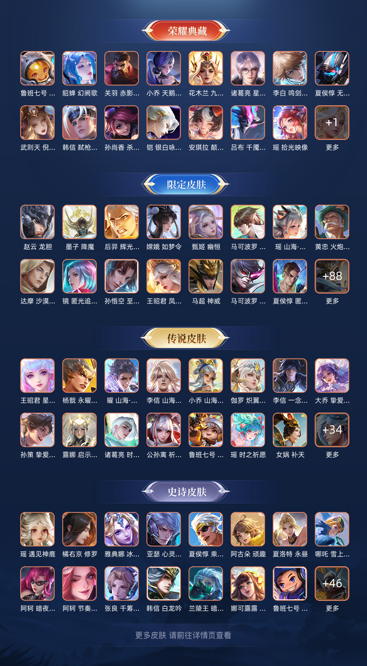 装备描述:679皮肤18典藏1珍品无双11无双10珍品传说114传说237史诗14星传说 千魇归渊 最初的交响 颠倒童话魔镜 拾光映像 神鉴启示录 武则天 倪克斯神谕 无限飓风号 星空梦想 天鹅之梦 杀手不太冷 鸣剑曳影 星域神启 九霄神辉 赤影疾锋 银白咏叹调 幻阙歌 弑枪猎影 馥梦繁花 无相 神罪 天机白泽 离恨烟 器灵螭龙剑 雪境奇遇 群星魔术团韩信 时之魔女 碎月剑心 真我赫兹瑶 问心剑 沧流箭 朽木白哉 黑崎一护 大耳狗之梦 酷洛米之心 兔狲蓬尾 器灵落星盏 时之奇旅孙策 江户川柯南 怪盗基德 漫霞共誓 沐霞之诺 破晓神光 幻舞叠翠 岁雨灵司 时之愿境 无限倾慕 游龙堇华 寅虎焰心 时之思念 幻海之心 星际治安官 未来机甲 金色仲夏夜 小兵-露营小黄鸭 小兵-狐妖小红娘 小兵- HELLO KITTY
