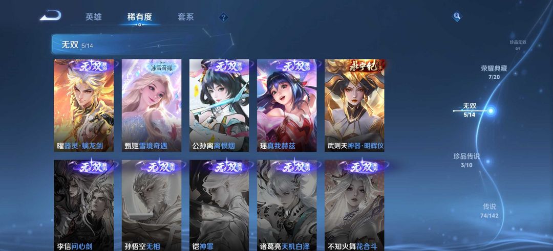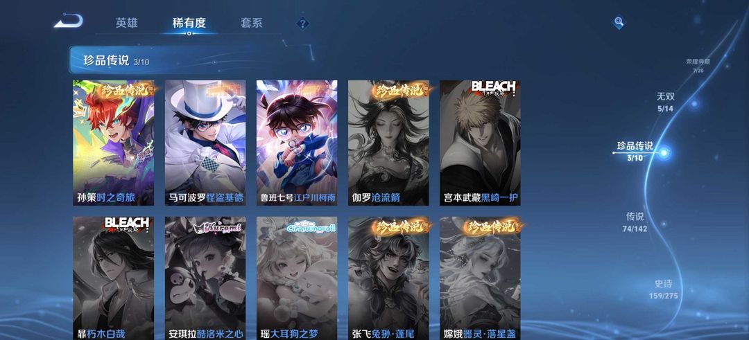 有梅西✨圣诞老人✨离恨烟✨怪盗基德✨白虎志✨鸣剑曳影✨7荣耀典藏✨5无双✨3珍品传说✨74传说